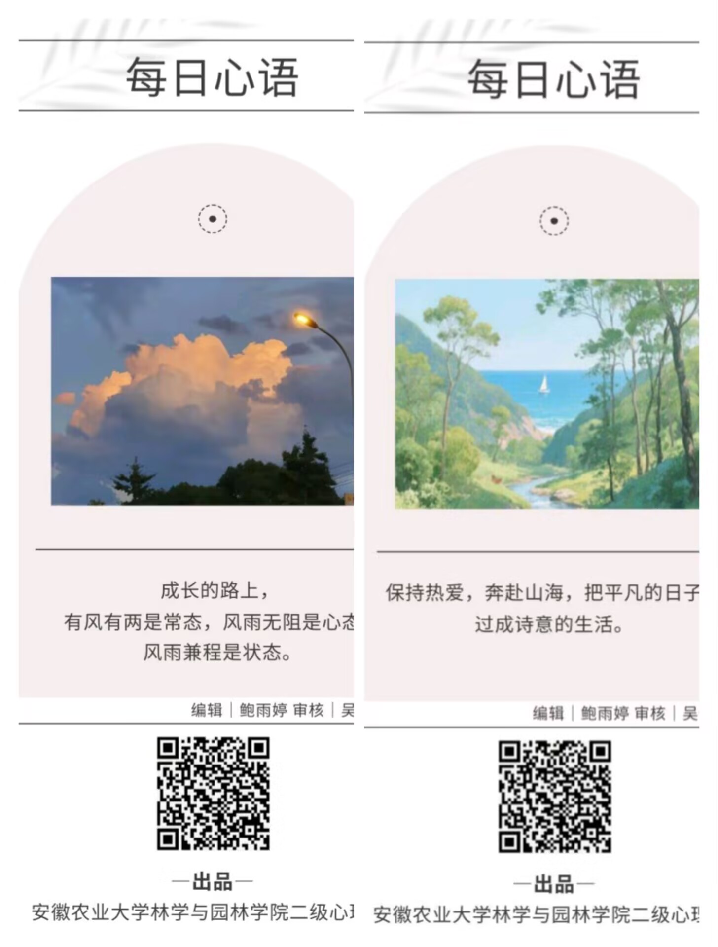 “每日拾光,心语润田”每日心语推动活动。除了线下活动,学院二级心理工作站还通过线上平台开展了每日心语推送活动。每天一条充满温暖与力量的心灵寄语准时推送到同学们的手机上,截至目前已推出149期。这些心语或蕴含哲理,或充满鼓励,或分享心理健康小知识,活动以润物细无声的方式,陪伴同学们度过每一天,为他们带来心灵的慰藉和鼓舞,成为同学们日常生活中的一抹温暖亮色。