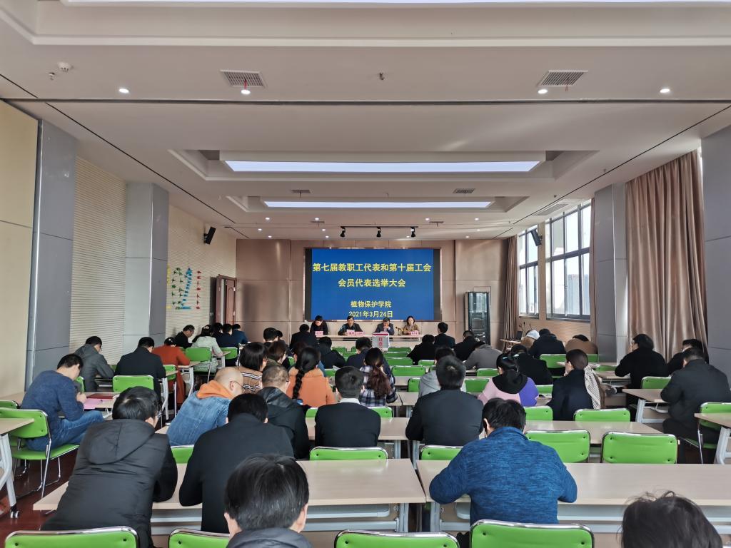 本网讯3月24日,植物保护学院在中西部大楼1201会议室召开第七届教职工代表和第十届工会会员代表选举大会,学院全体教师参加会议,大会由院党委书记张平主持。