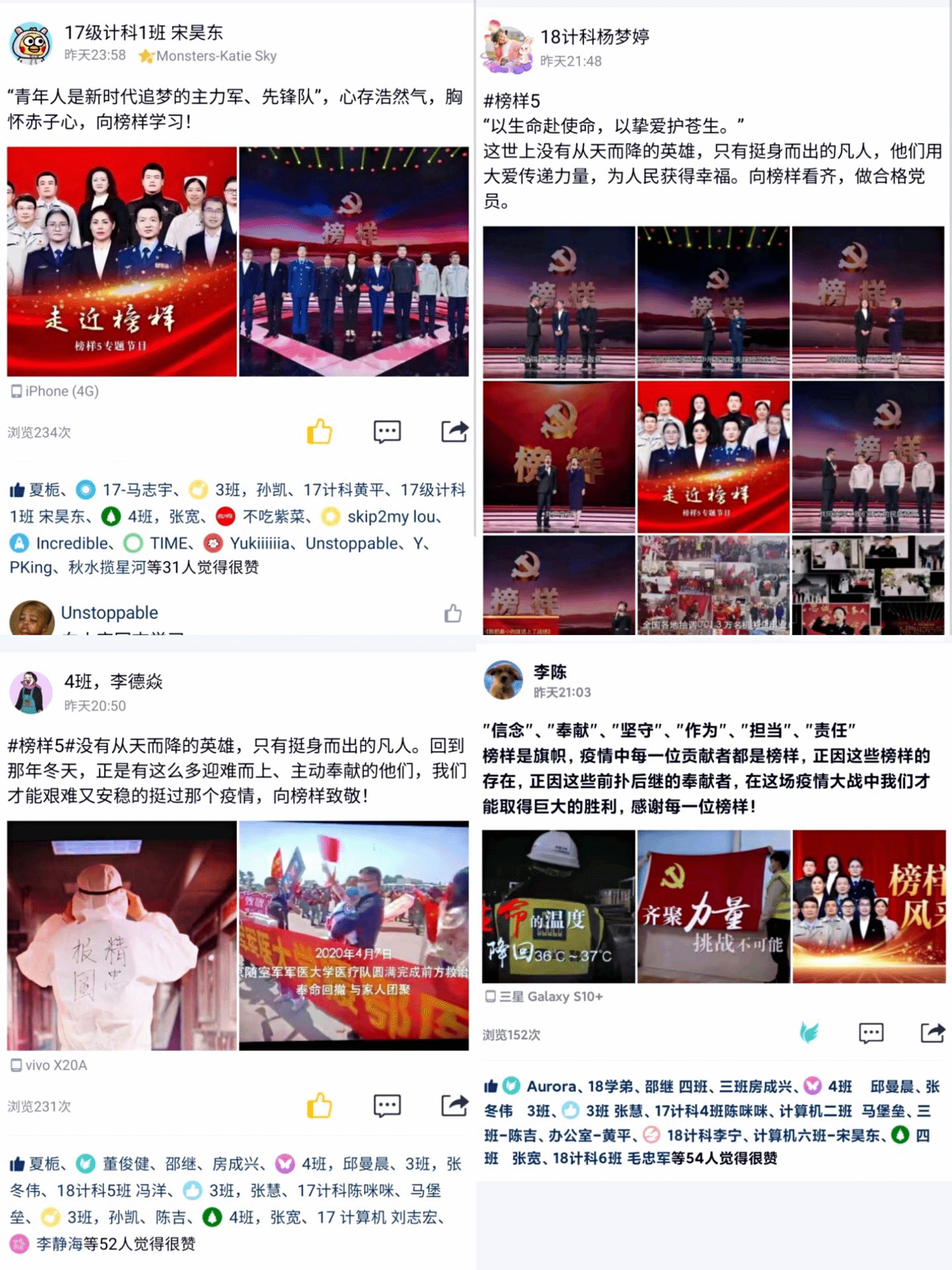 节目播出后,党员和团员青年代表通过易班、微信、qq等平台,讲心得、谈体会。表示要以英雄人物为榜样,不畏艰险,砥砺前行,不懈奋斗,努力实现自己的人生价值,做一个有责任、有担当的人,为国家和社会的发展注入正能量,让青春之花在党和人民最需要的地方绽放。(高寒杨梦婷通讯员:王政)