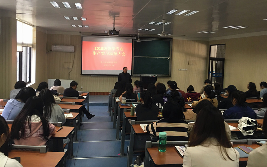 本网讯3月24日中午,2018级茶学专业生产实习动员大会在茶业楼1992教室举行,2018级茶学专业全体学生、各实习点带队老师、班主任以及教学管理人员参加,动员会由茶业系主任李叶云教授主持,副院长周裔彬教授作动员讲话。