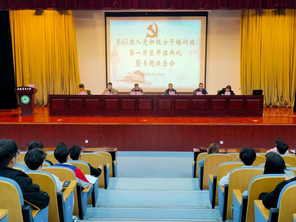 本网讯 3月26日下午,校分党校第一片区第61期入党积极分子培训班开班仪式暨专题报告会在图书馆第一报告厅举行。园艺学院党委副书记鄢高翔、林学与园林学院党委副书记谈应权出席会议,第一片区全体党校学员和班主任参加了会议。会议由工学院党委副书记张国学同志主持。