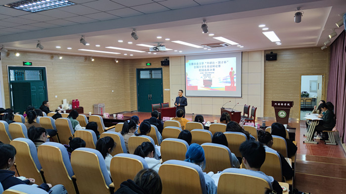 本网讯 3月24日晚,2021年“外研社·国才杯”全国大学生英语辩论赛暨中国外文局主办的全国大学生英语辩论赛(China Universities Debating Championship,CUDC)校内选拔赛在外语楼502多功能厅成功举办。校团委张璐老师,外国语学院党委副书记姬惠惠和来自全校各学院100多名同学现场观摩了比赛。经过激烈的角逐,由18级英语1班的汪莹和17英语3班的张萌欣组成的团队、18英语1班的张启雯和卯青组成的团队获得比赛一等奖。另外,有6个团队分获二等奖和三等奖。