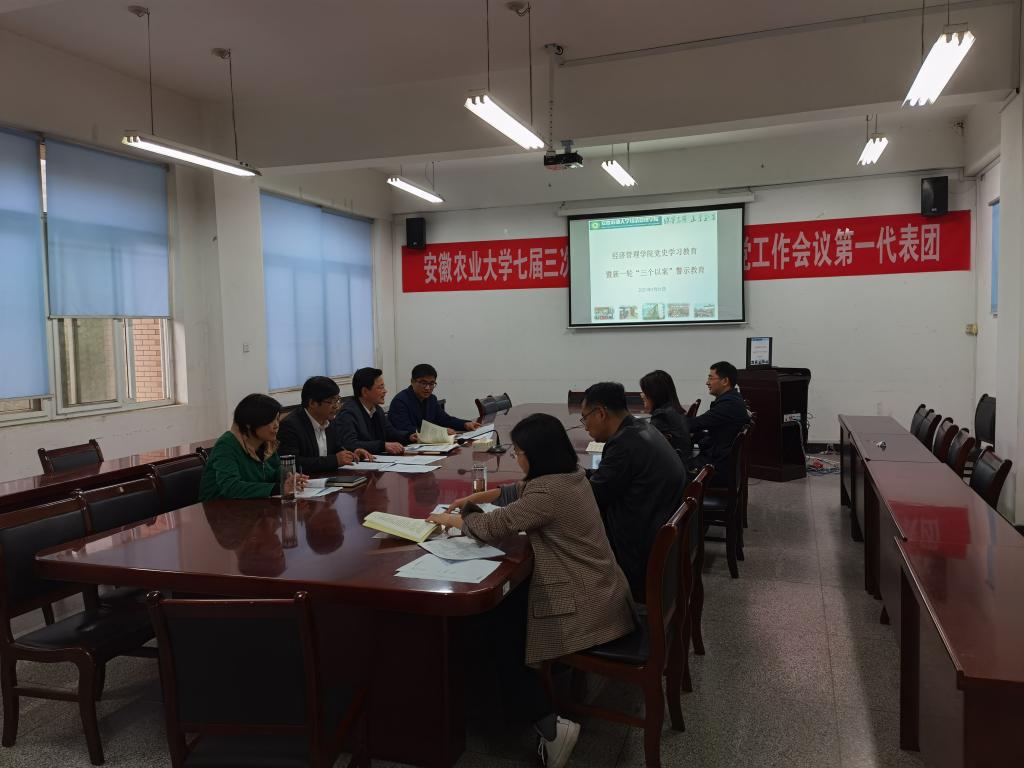 孙超带领大家集中学习了《毛泽东、邓小平、江泽民、胡锦涛关于中国共产党历史论述摘编》之《改造我们的学习》。副院长田涛和宋燕平分别领学了《习近平关于力戒形式主义、官僚主义重要论述选编》中的形式主义、官僚主义是我们党的大敌、人民的大敌和建立崇尚实干、劳动担当、加油鼓劲的正向激励两部分内容。与会人员还集中学习了《安徽农业大学违纪典型案例汇编》,以身边人身边事来开展警示教育。