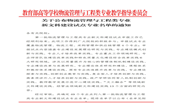 本网讯近日,我院接到喜报,经教育部高等学校物流管理与工程类专业教学指导委员会(以下简称教指委)审核,安徽农业大学信息与计算机学院物流工程专业成功入选物流管理与工程类专业新文科建设试点专业名单。