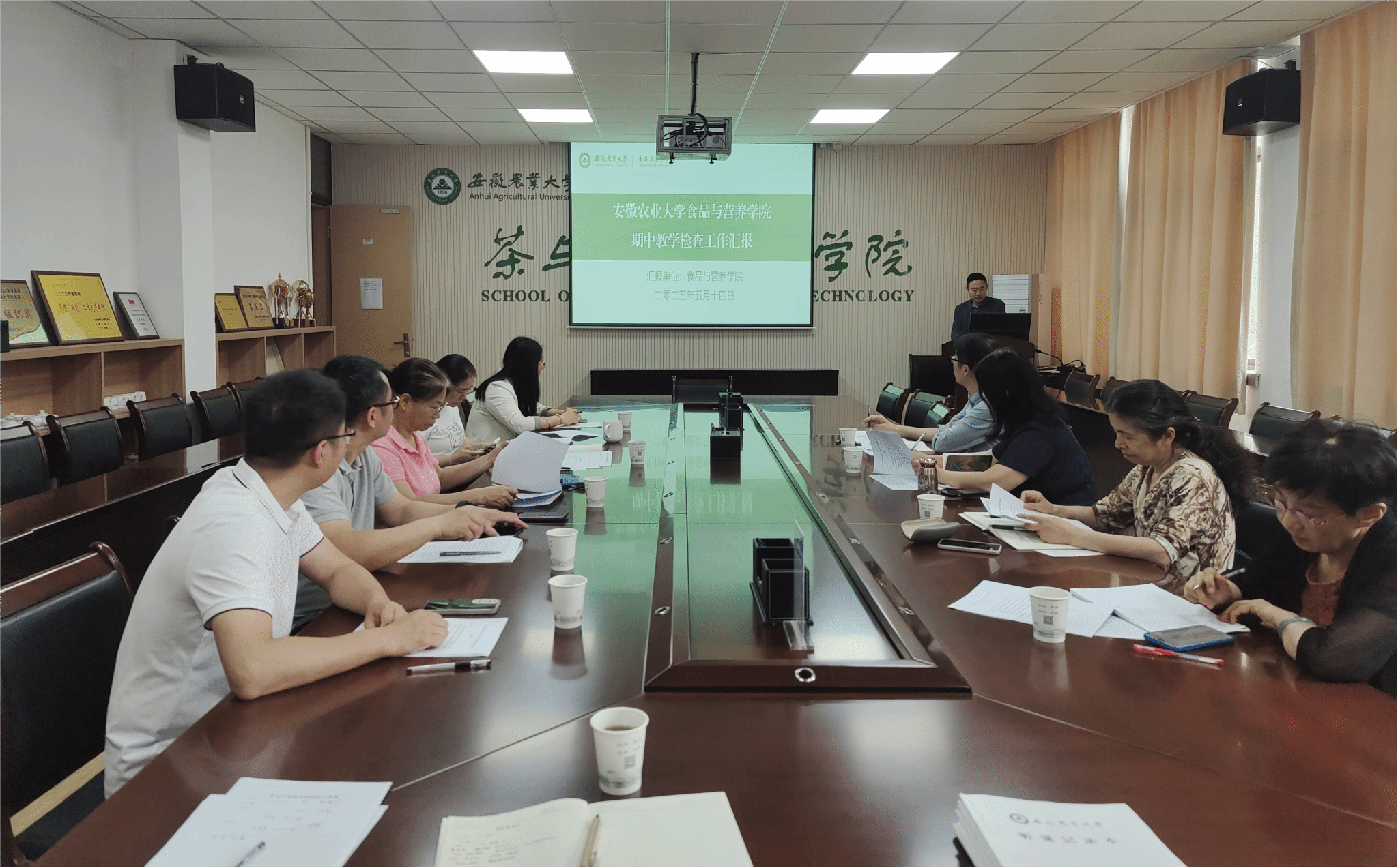 本网讯 5月14日上午,校教务处副处长宋贺、校督导沈琳、朱静、张玉琼一行赴食品与营养学院开展2024-2025学年第二学期期中教学检查工作。学院教学副院长梁进、院督导组、各系(中心)负责人以及本科教学秘书参加会议。