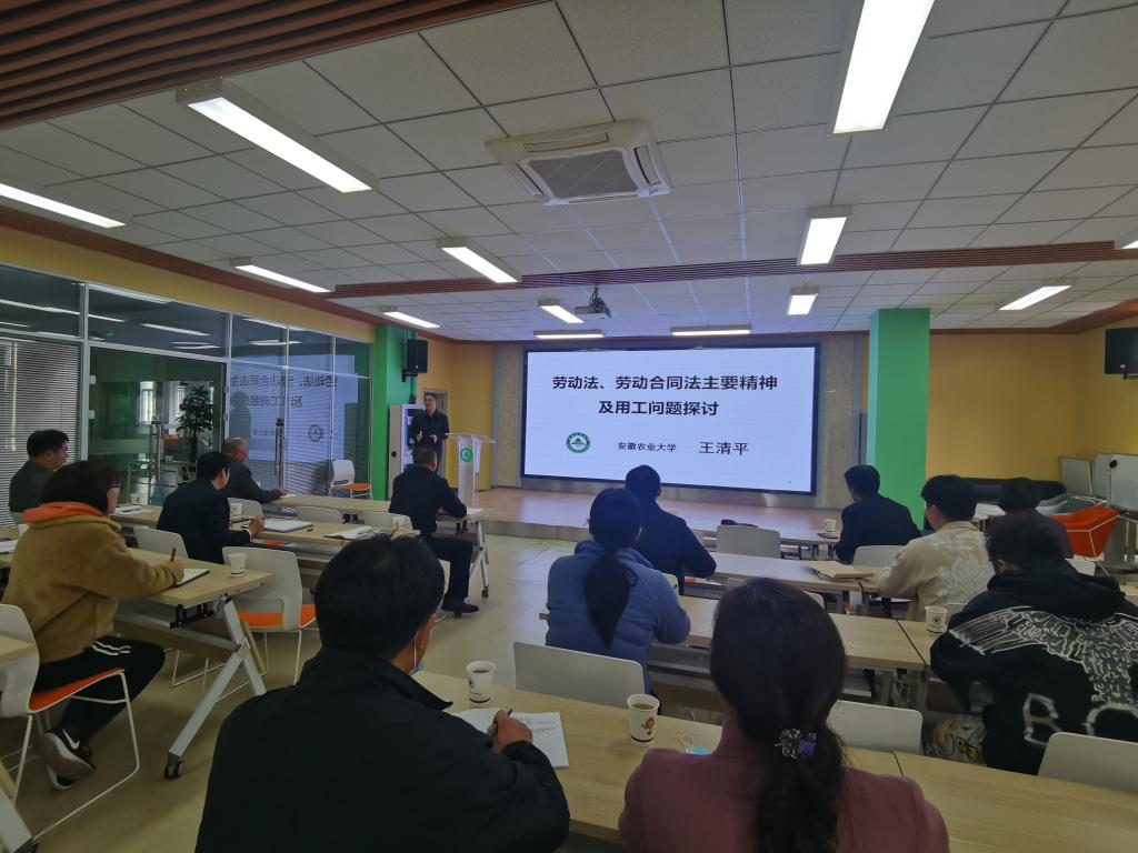培训会上,王清平以“劳动法、劳动合同法主要精神及用工问题探讨”为题,从劳动关系等概念、用工管理的法律依据、劳动法劳动合同法、主要精神、后勤保障处用工管理建议等四个方面内容,进行了详细的解读使大家对《合同法》、《劳动合同法》有了新的诠释。