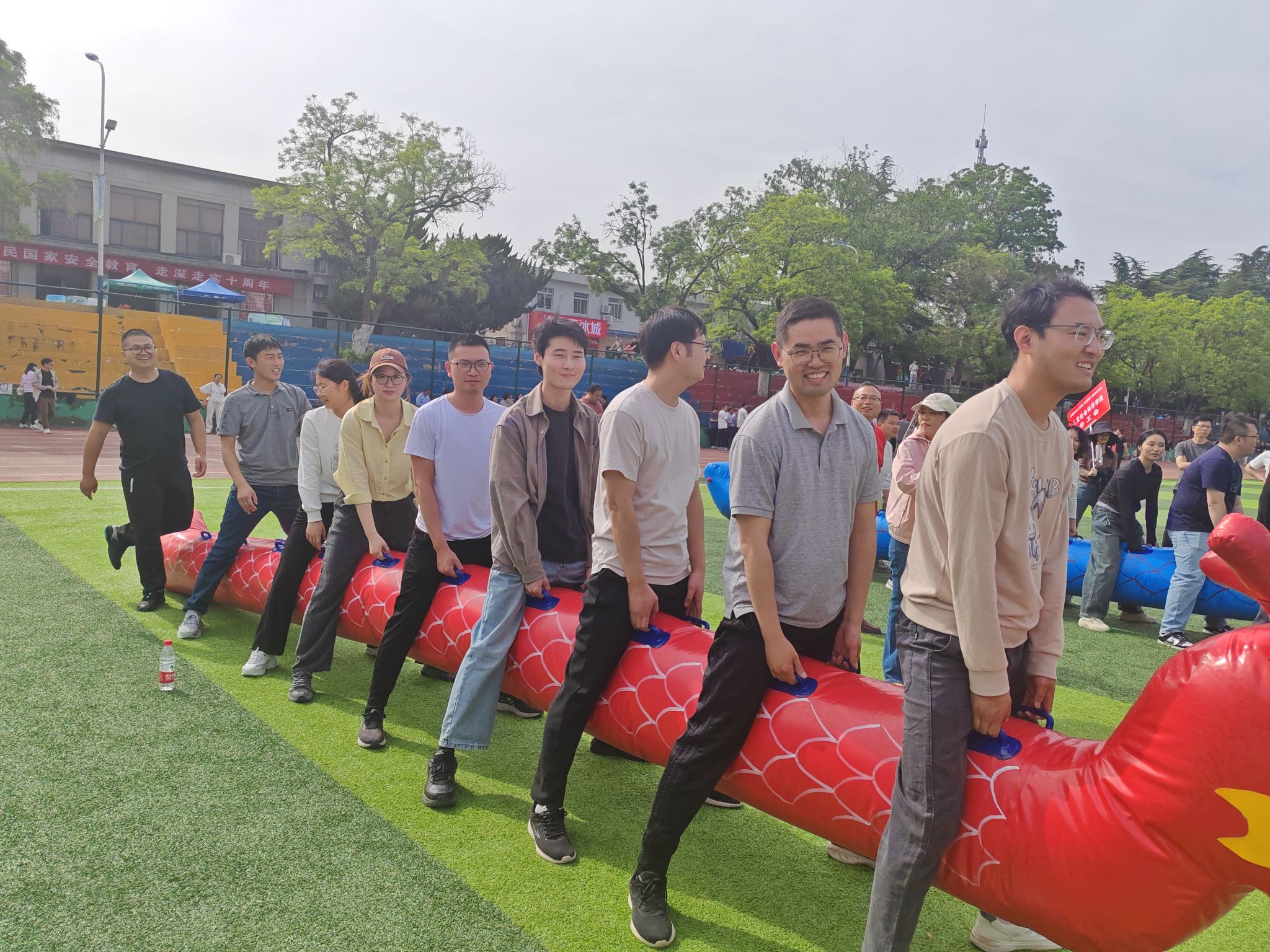 在第二届教职工趣味运动会集体项目中,队员们默契配合、稳扎稳打。经过激烈角逐,学院荣获二等奖,实现历史性突破。