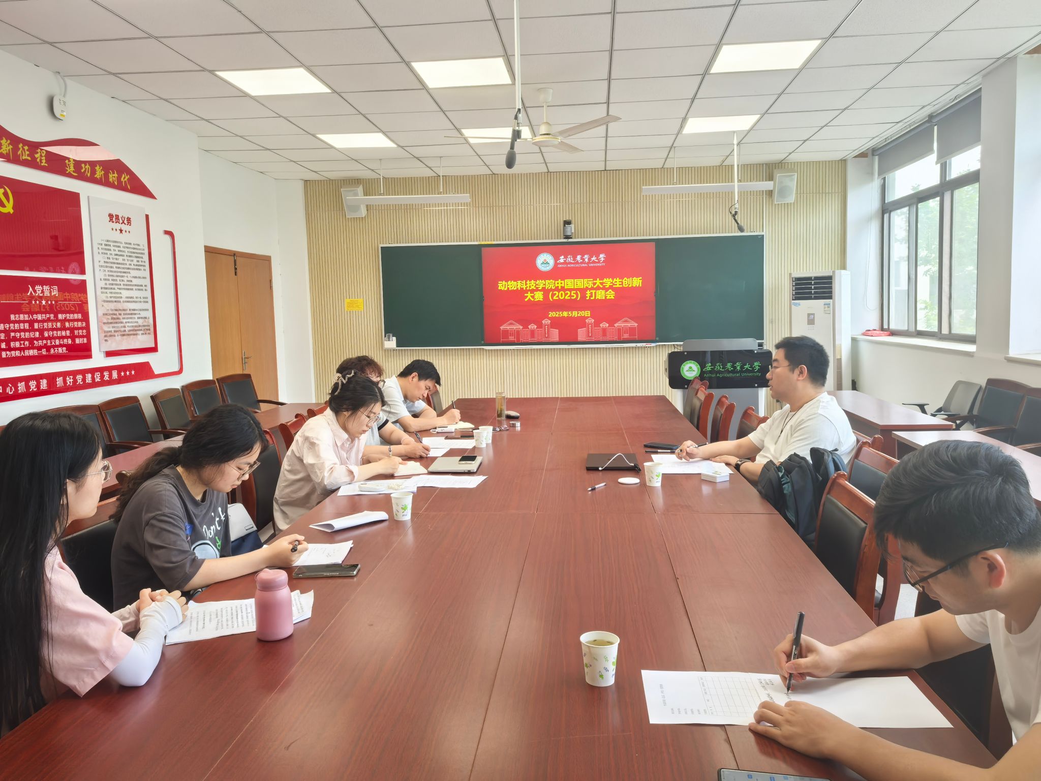 本网讯 5月20日上午,动物科技学院在动科楼306会议室成功举办中国国际大学生创新大赛(2025)项目打磨会。会议特邀王承超、张志平等专家到会指导。“江淮羊倌”项目团队负责老师任春环、各参赛团队核心成员等参加本次会议。