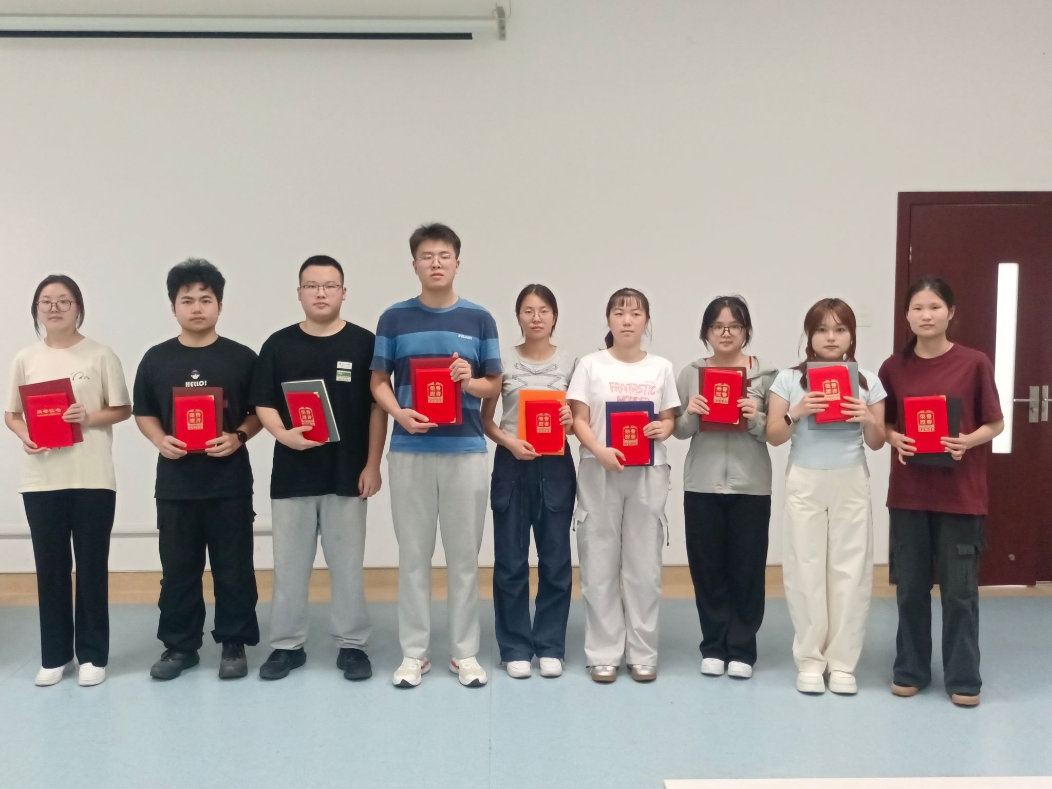 本网讯 5月21日晚,图书馆第二届阅读文化节“战火装帧的时光——抗日战争暨世界反法西斯战争胜利80周年主题阅读挑战赛”颁奖仪式在图书馆610教室举行。图书馆、档案馆副馆长裴顺出席仪式,为获奖学生颁奖并合影留念。采编部馆员、图书馆青禾悦读团队同学及全体获奖学生参加。