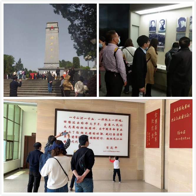 院党委始终坚持把红色资源作为学习党史、重温初心的生动教材。4月17日上午,院党委副书记、副院长孙伟和应用数学系教工党支部的教师党员一行怀着敬仰之情,乘车来到被誉为“红军的摇篮、将军的故乡”——革命老区金寨县,感悟革命精神,接受心灵洗礼。4月18日,应用化学系党支部一行前往霍山县烈士陵园革命纪念馆,开展“深入践行党史教育,迎接党的百年华诞”主题党日活动。通过重走一段“红色路”,现场接受革命传统教育,引导党员铭记党的奋斗历史和革命先烈丰功伟绩,真正做到知史爱党、知史爱国,以更加坚定的理想信念,激励新担当新作为。
