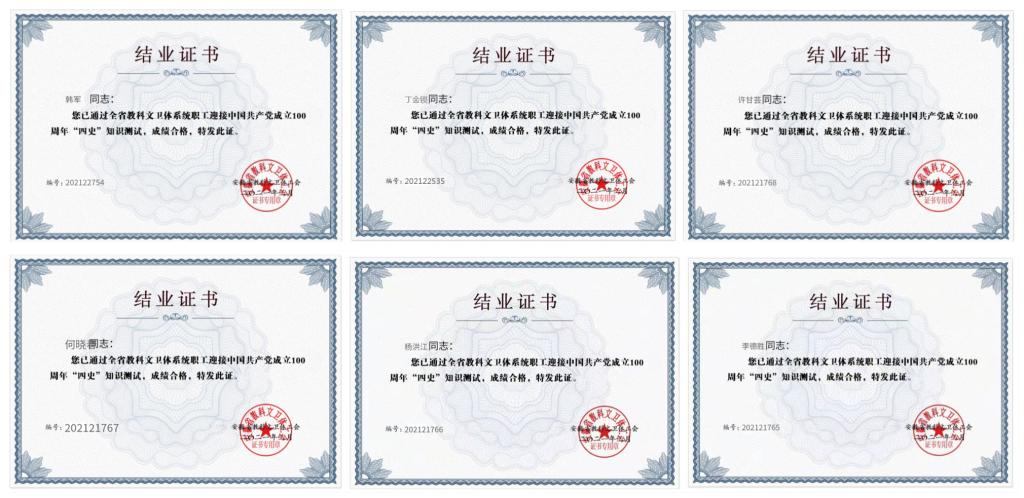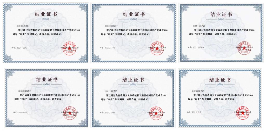 随后,全体在职党员登录安徽职工服务网,在线进行“党史、新中国史、改革开放史、社会主义发展史”知识测试,全体获得了学习结业证书。党员同志们积极参与,踊跃答题,共同回顾了党史、新中国史、改革开放史、社会主义发展史;通过四史知识测试,党员们回望过往的奋斗路,眺望前方的奋进路,有信心把党的历史学习好、总结好,把党的成功经验传承好、发扬好,把党史学习成效当作工作动力,达到“学党史、悟思想、办实事、开新局”。