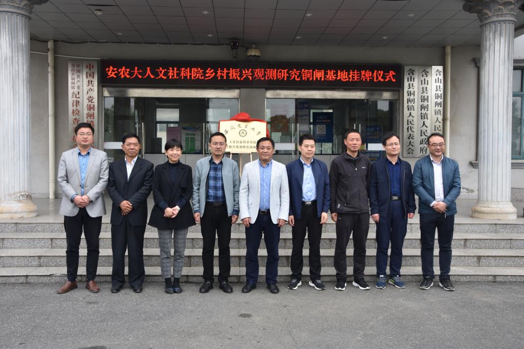 本网讯 4月23日上午,人文社会科学学院党政领导张晓伟、姜红及社会学系师生一行赴含山县铜闸镇,举行院地党建共建签约暨乡村振兴观测研究铜闸基地挂牌仪式。含山县县委副书记孙信滨、县委常委、宣传部长齐道明、县扶贫办、铜闸镇以及镇所属村等单位负责同志参加仪式。