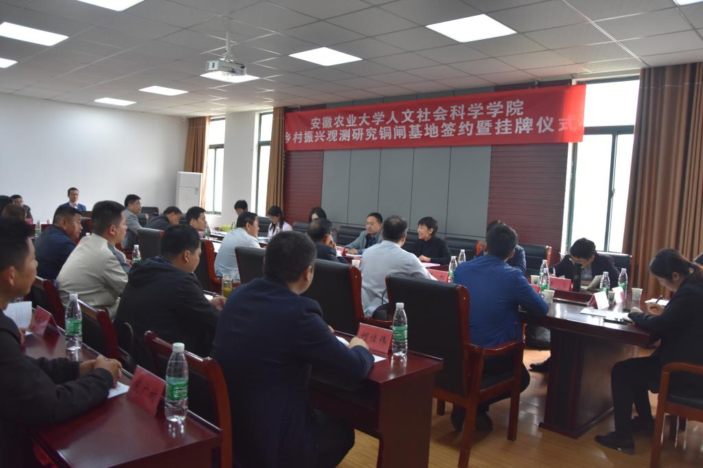 双方共同为“安徽农业大学人文社会科学学院乡村振兴观测研究铜闸基地”揭牌。4月23日至25日,2019级社工专业39名学生在5名指导教师的带领下,在铜闸镇7个村开展为期3天的课程实习。(方黎 通讯员:张旭念)