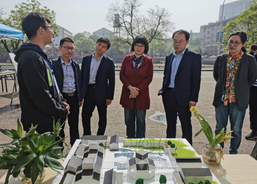 本网讯 4月28日上午,林学与园林学院在校大礼堂前举办“奋斗百年新时代,党耀林茵开未来”——第九届文化月闭幕式暨成果展主题展览。校学工部(处)处长姚莉、副处长刘柳、校团委副书记张志平以及学院党委书记江正君、党委副书记谈应权莅临本次活动现场参观指导。