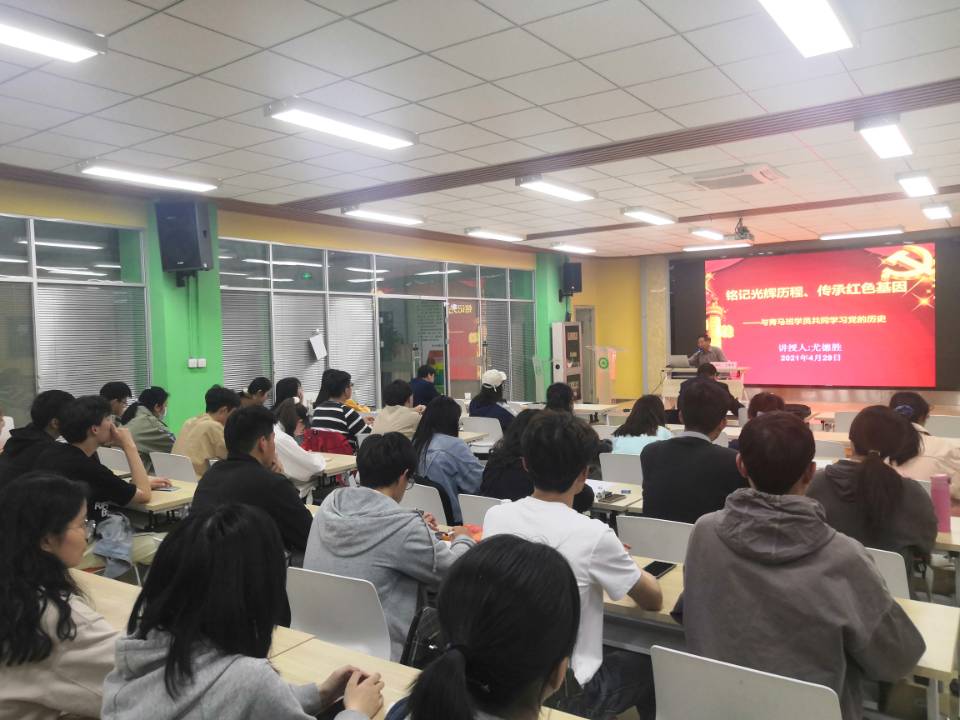 本网讯4月29日晚,我校“青马工程-菁穗领航计划”学习班专题理论培训在欣苑三楼创客空间路演大厅举行。我校退休老干部尤德胜老师为青马班学员带来了一场主题为“铭记光辉历程,传承红色基因”的讲座。校离退处工作处处长涂德润,本期青马班学员、班主任、指导老师参加了讲座。会议由校团委副书记张志平主持。本次活动也是我校“关心下一代”系列活动之一。
