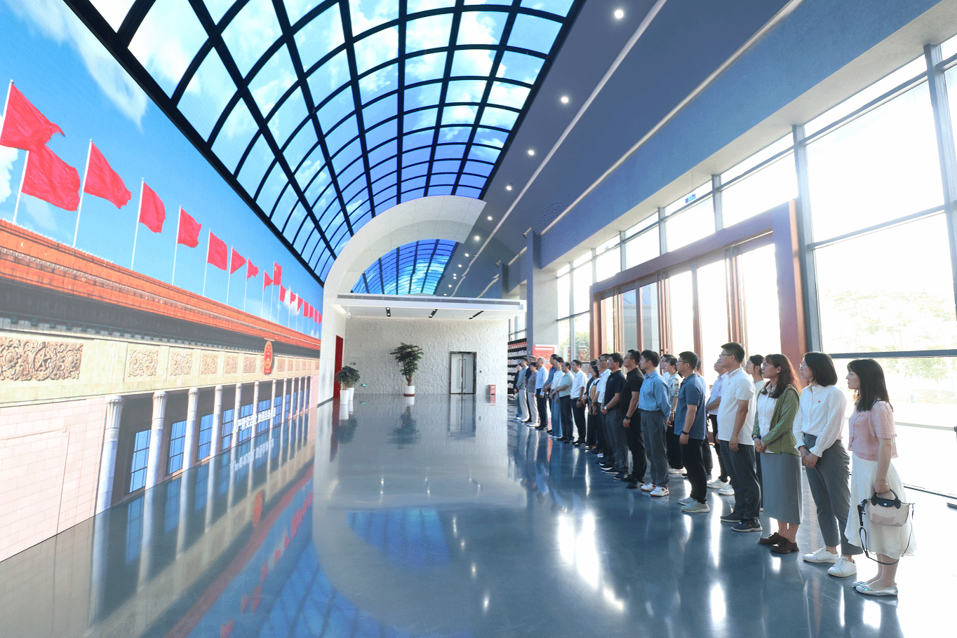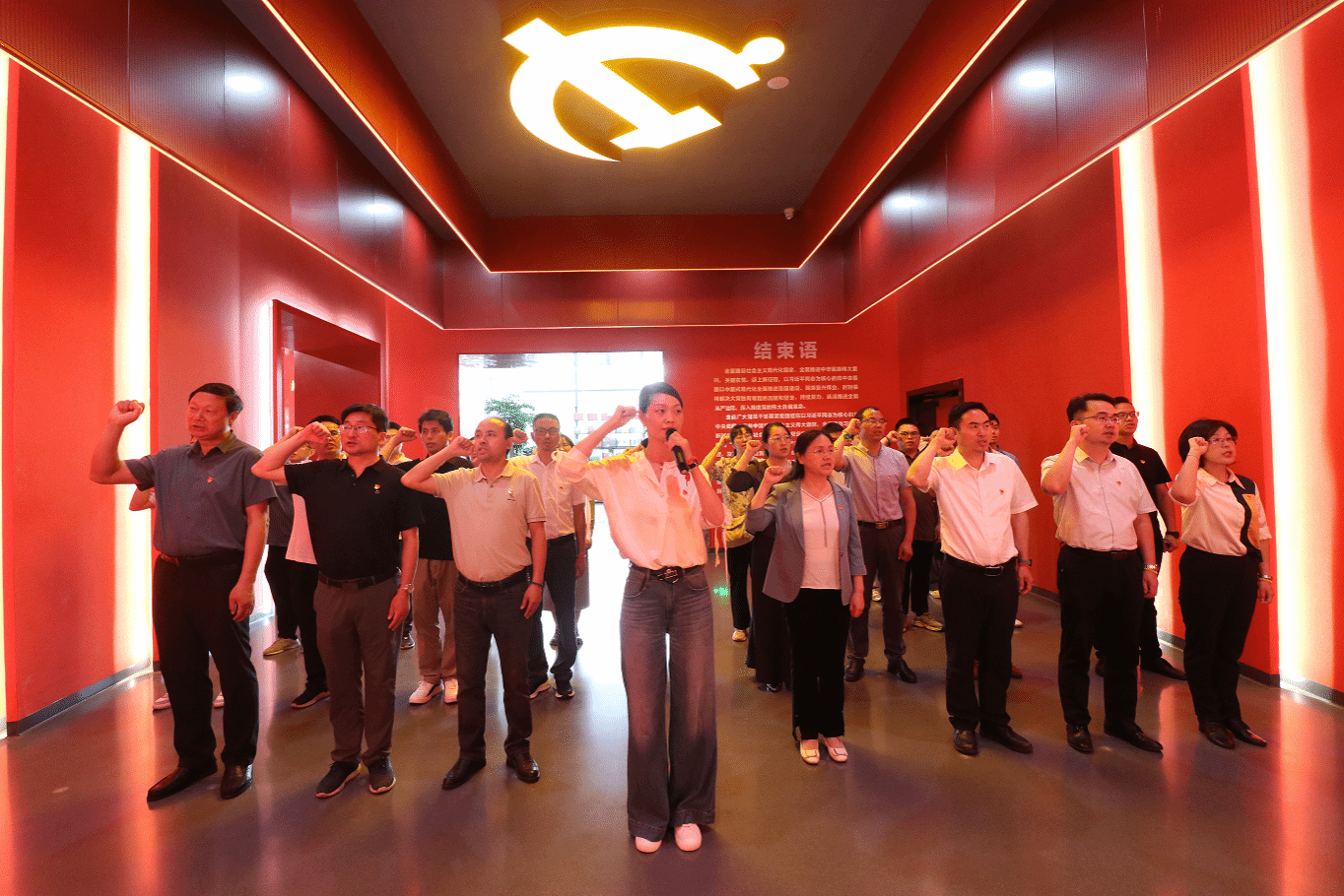 参观结束后,全体党员面向鲜红党旗,庄严宣誓,重温入党誓词,牢记入党初心。