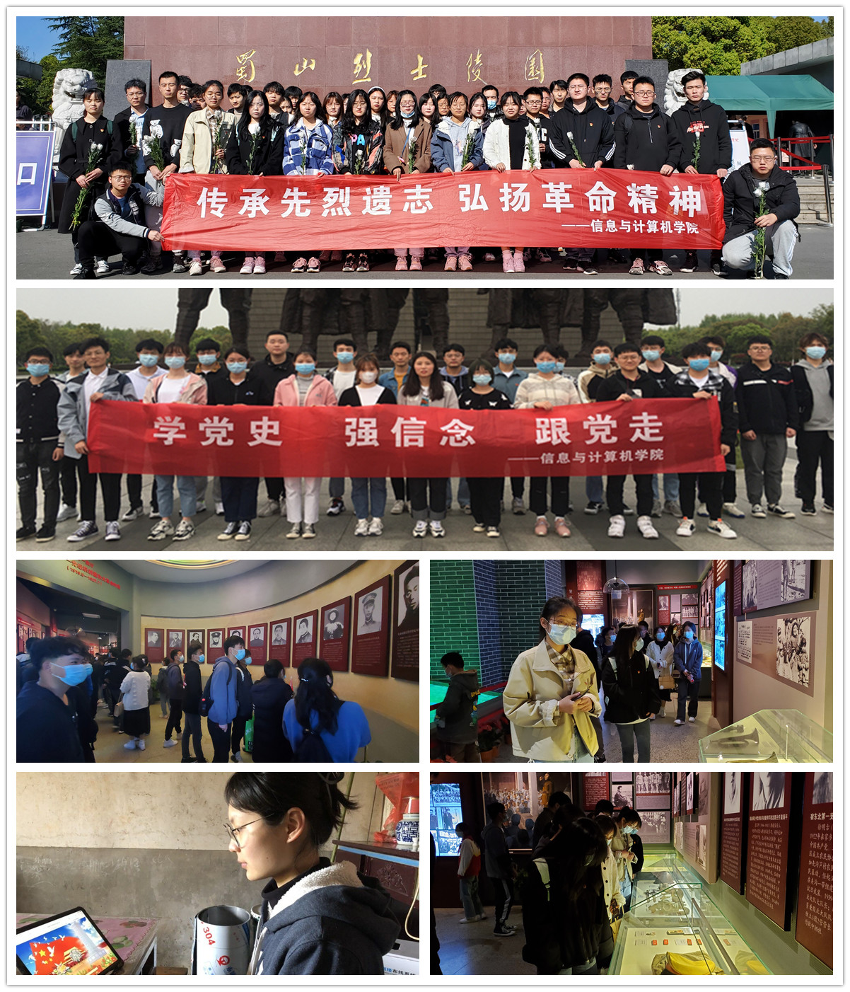 为进一步汲取先进典型的榜样力量,发挥先进典型的模范带头作用,营造全体团员学习先进、争当先进的浓厚氛围。4月4日清明节来临之际,学院组织部分党员代表、61期入党积极分子、院级“青马班”学员前往蜀山烈士陵园开展“清明祭英烈”主题实践活动,线上,通过“网上祭英烈”的方式,进行网上祭拜、献花、留言,表达对革命烈士的缅怀之情。4月14日,学院组织党员、学生干部、团员等学生代表赴渡江战役纪念馆、安徽创新馆开展党史学习社会实践活动,让同学们领略我国在科技创新领域取得的重大成果,增强大国自信,坚定了励志奋斗、报效祖国的信心。