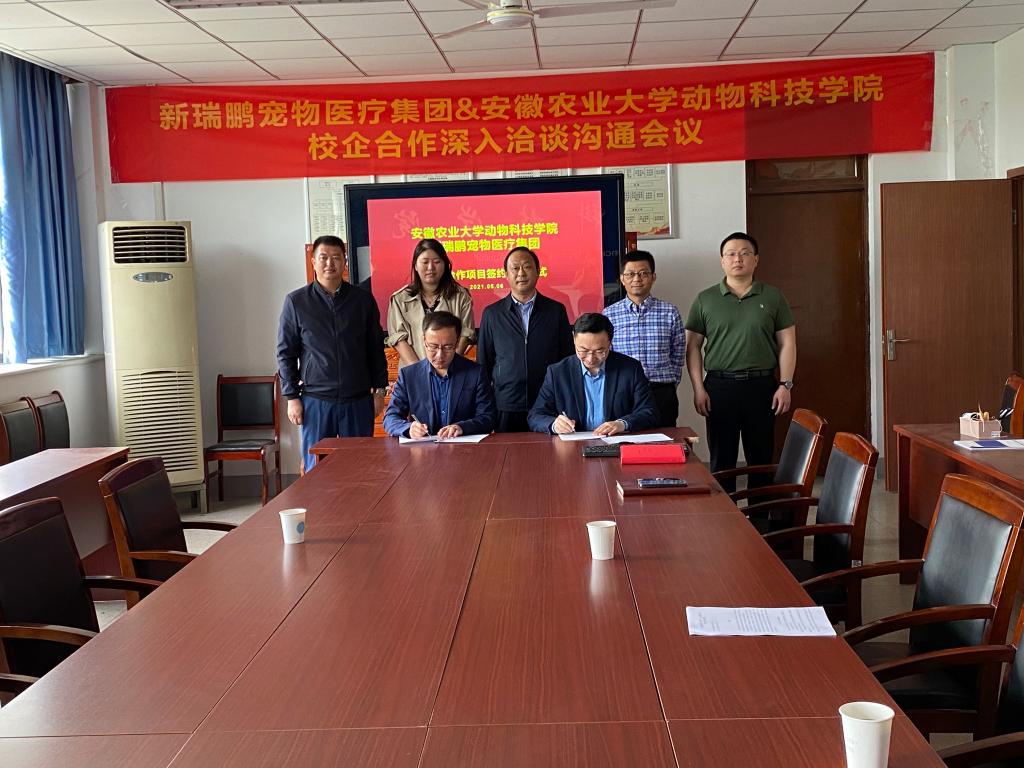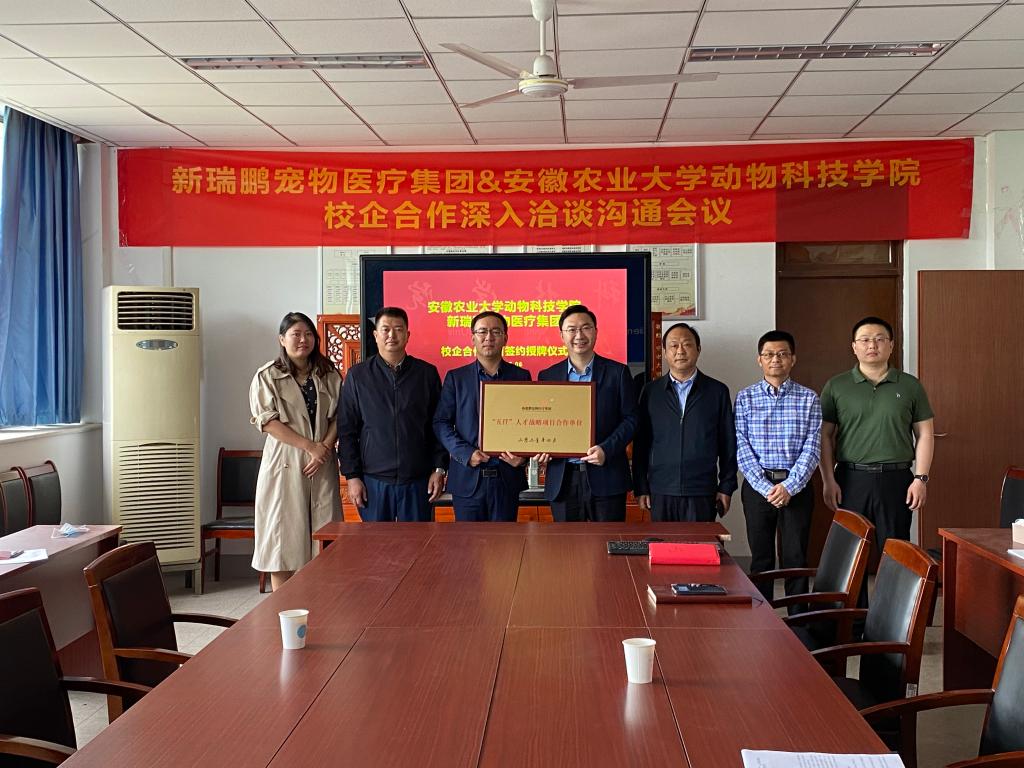 本网讯 5月6日上午,动物科技学院与新瑞鹏宠物医疗集团五仟人才项目签约授牌仪式在动科楼306会议室举行。新瑞鹏集团华东苏皖区总经理胡旺庭、集团招聘副总监李鹏、集团华东苏皖区人力资源部高级经理李立军、集团华东苏皖区人力资源部招聘专业主管马奔,动物科技学院院长耿照玉、副院长涂健,动医系专业负责人周杰、动医系主任王希春、小动物创新班负责人刘亚、动医系副主任陈芳芳、王勇,学院就业联络员出席了会议。