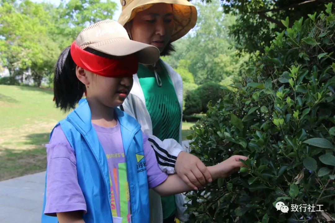 在介绍完本次活动流程后,孩子们为自己和妈妈精心设计了一个自然名,每一个自然名背后都有别样的含义。随后,母亲大手牵着小手,带领蒙着双眼的孩子去感受植物,走到道路的另一头。随后,孩子们睁开双眼,带领妈妈经过触摸过的植物,沿着原路回到起点。