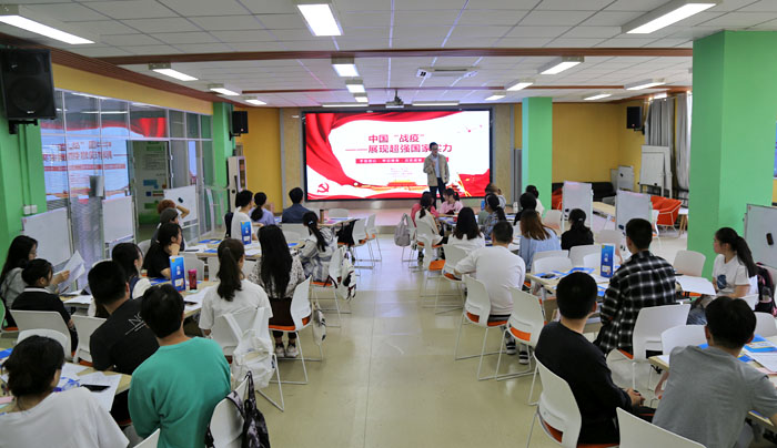 活动前,我校青年党史宣讲团成员张子伟结合党史学习教育,以《中国“战疫”——展现超强国家实力》为题开展了微宣讲活动,向大家讲述了中国在疫情防控伟大斗争中展现出“中国力量”“中国效率”和大国担当,充分彰显出中国特色社会主义制度的强大优势。全体学员通过对比我国和西方资本主义国家在大规模新型流行病疫情防控上的差异,更加深刻认识和理解中国特色社会主义的制度优势,进一步增强“四个意识”、坚定“四个自信”、做到“两个维护”。