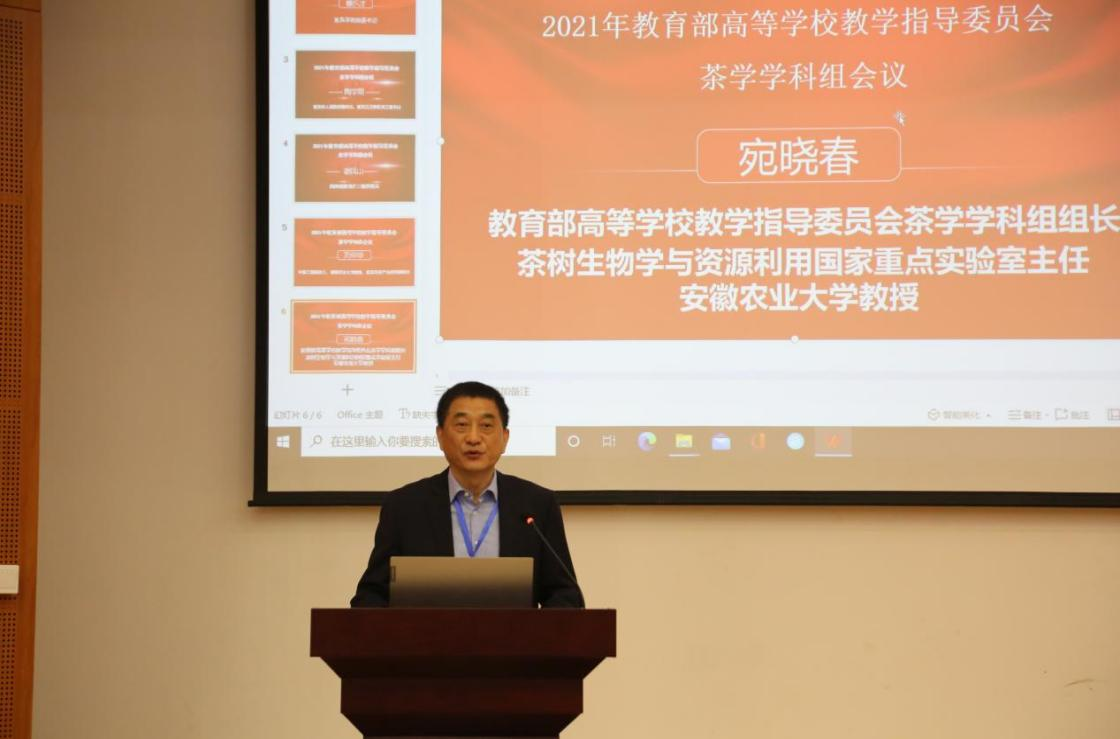 本网讯5月7-9日,由教育部高等学校教学指导委员会茶学学科组主办,宜宾学院与我校共同承办的“2021年教育部高等学校教学指导委员会茶学学科组会议暨茶学专业建设与学科发展研讨会”在宜宾学院成功举办。教育部高等学校教学指导委员会茶学学科组组长、我校茶树生物学与资源利用国家重点实验室主任宛晓春教授率队出席会议。茶学学科组委员湖南农业大学刘仲华院士、华南农大曹潘荣教授,武夷学院李远华教授参会。
