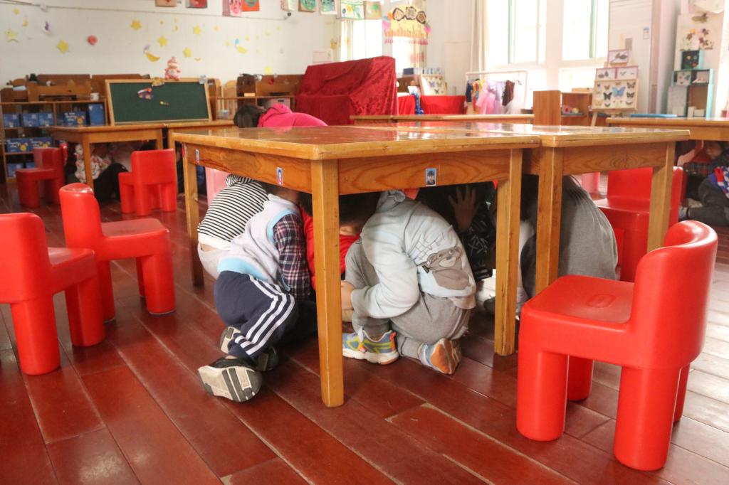 下午15时30分,保卫处联合后勤保障处在学校幼儿园开展防震应急疏散演练。幼儿园全体师生高度重视、积极配合,按照演练前制定的活动方案有序开展。当防震警报响起时,小朋友们用双手抱头,快速的躲到课桌下和厕所的墙角旁;当应急紧急疏散警报响起时,小朋友们用双手抱头快速撤离教室,有序到达安全疏散区,各班级进行人数清点和演练工作总结。整个疏散过程安全、紧张、有序,达到了预期效果。