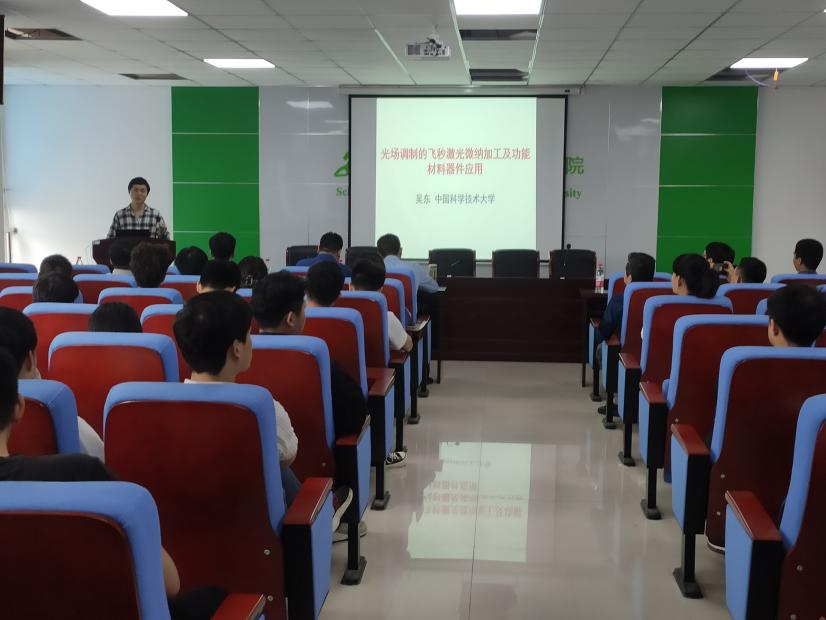 本网讯 5月12日下午,中国科学技术大学精密机械与精密仪器系吴东教授应邀做客工学院精匠讲堂——“精匠制造”学术讲座第3期,在工程楼北楼562学术报告厅为我院师生作题为《光场调制的超快激光微纳加工及功能性器件应用》的学术报告。报告会由工学院副院长姚兴贵主持。
