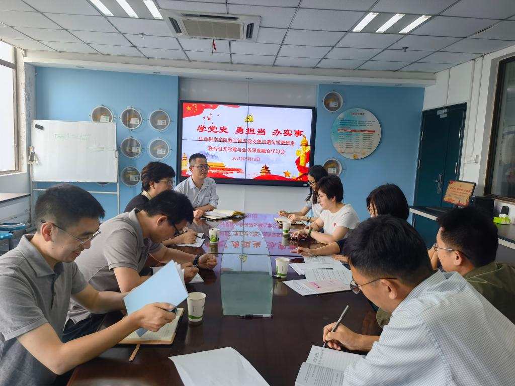 5月12日下午,支部与遗传学课程组联合召开党建与业务深度融合学习交流会。会上共同学习了《习近平总书记在清华大学考察时的重要讲话》,结合遗传学课程组的教学任务与特色,探讨了国家级一流本科课程的申报与建设工作。与会教师围绕自身近期授课过程中的痛点和难点,展开热烈讨论,大家一致认为要逐渐转变教学理念,突出学生中心地位,不断创新教学方法、打破课堂沉默状态,焕发课堂生机,提高课堂教学的高阶性、创新性以及挑战度,特别注意结合课程思政元素,切实提升学生综合能力。