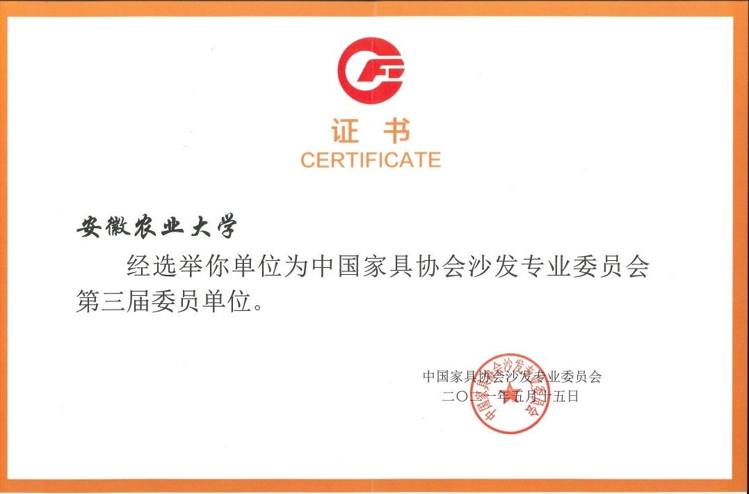 会议前半程审议通过了《中国家具协会沙发专业委员会工作条例》,表决通过了中国家具协会沙发专业委员会第三届主席团和委员单位,并颁发了主席团和委员单位证书,其中安徽农业大学是唯一入选委员单位的高校。