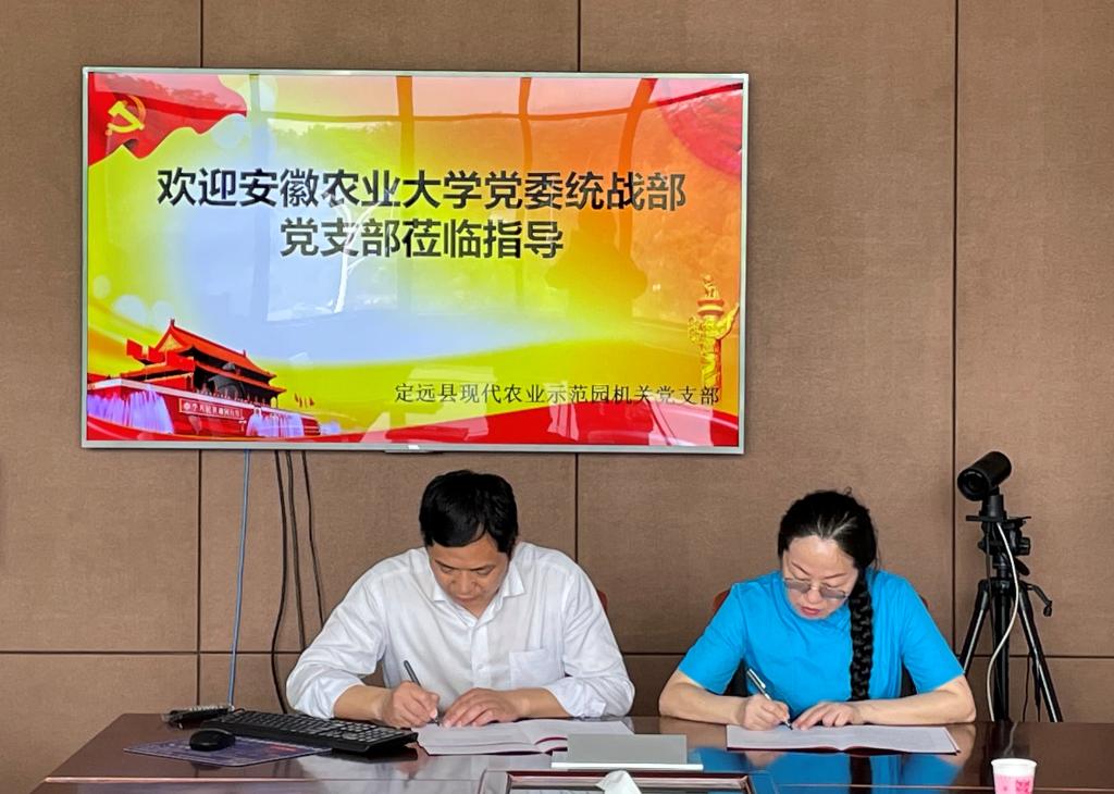 统战部到定远县现代农业示范园,与示范园机关党支部签订了支部共建合作协议。本次共建活动是继统战部与贵池区委统战部、省侨联社会工作部(权益保障部)党支部共建签约之后的第3次共建合作。校地双方根据各自特点和发展需要,联动各类战线,构建“校地大统战”工作格局,学校发挥人才专业优势,与产业园区实现资源共享、优势互补、协调配合,推动建立持久稳定的协作伙伴关系共同发展,同时结合党史学习教育,开展“我为群众办实事”活动,党委统战部已经组织肉食品加工专家、蔬菜专家、食品安全等方面专家进行科技咨询服务,今后还将陆续组织专家到定远农业产业化龙头企业、种养殖大户、农民合作联社以及江淮分水岭综合试验站,将科技送到田间地头,发展农村经济增产增收。(通讯员:何小佳)
