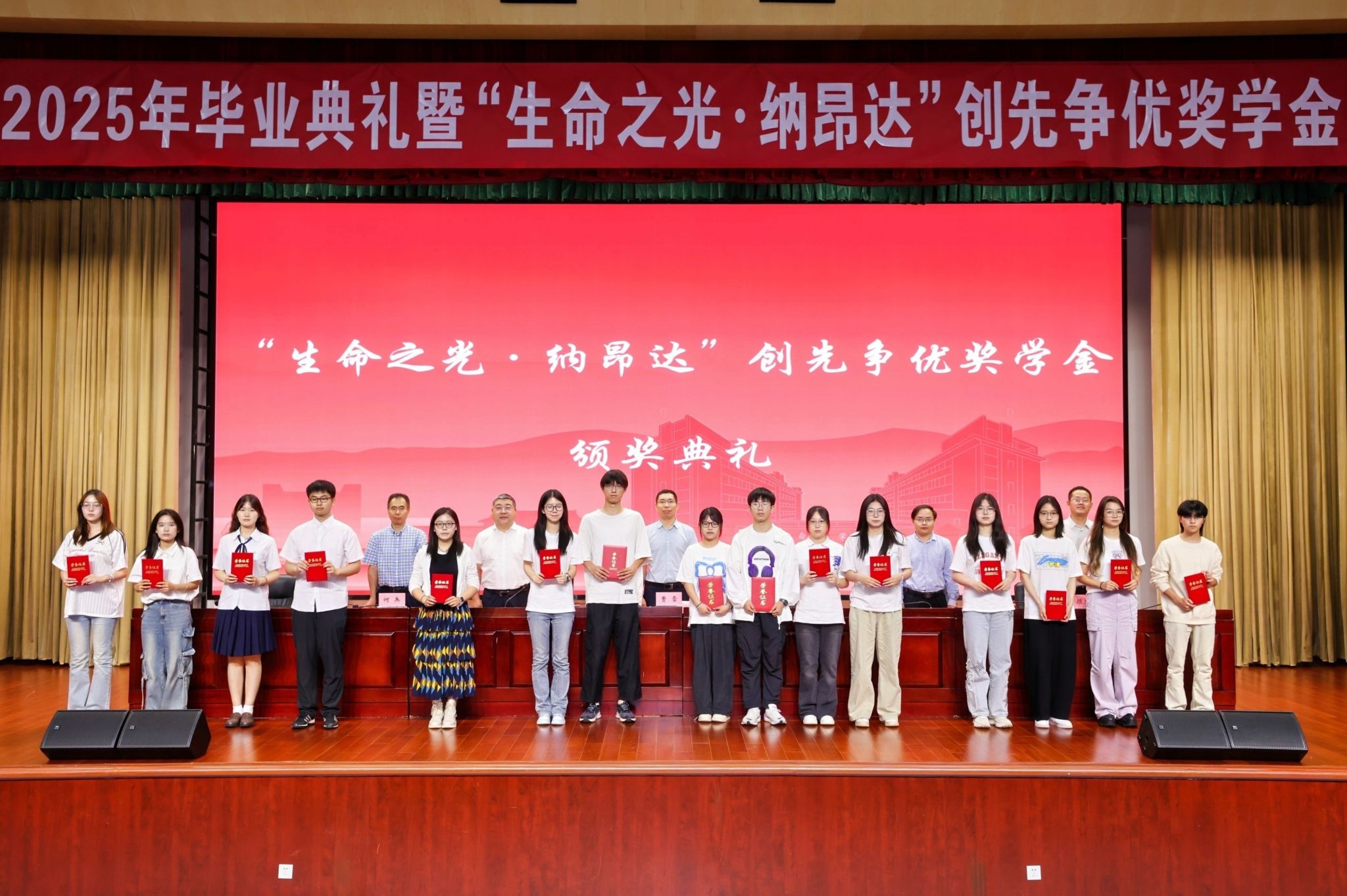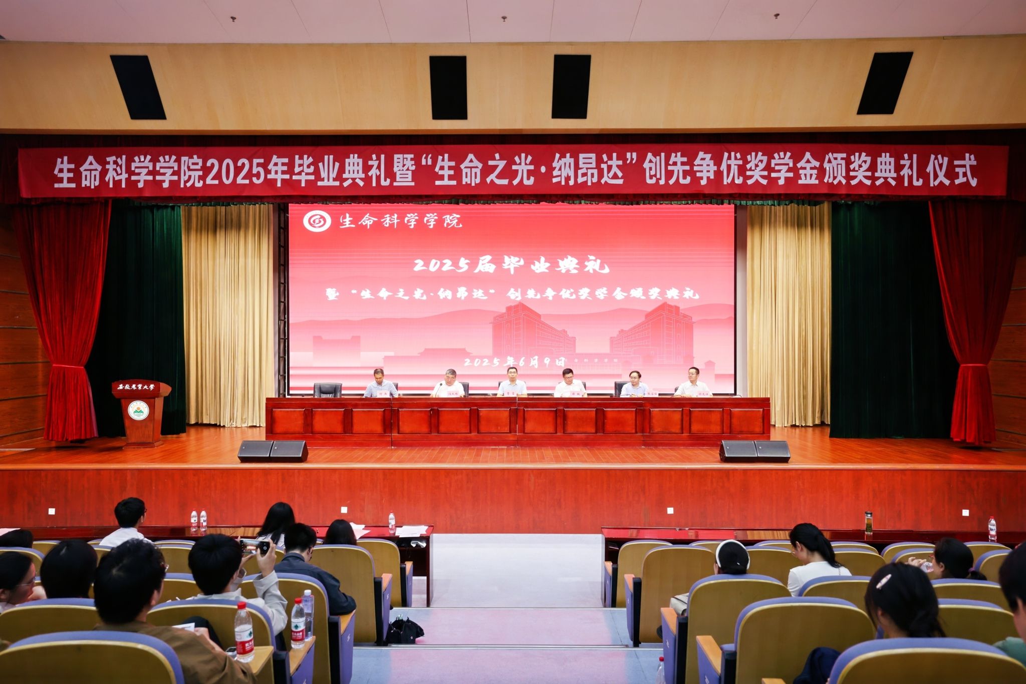 本网讯 6月9日下午,生命科学学院2025届毕业典礼暨“生命之光·纳昂达”创先争优奖学金颁奖典礼在图书馆第一报告厅举行。学院党政领导班子、各系部主任、教师代表、毕业班辅导员以及2025届全体毕业生参加。典礼由学院党委副书记、纪委书记闫大玮主持。