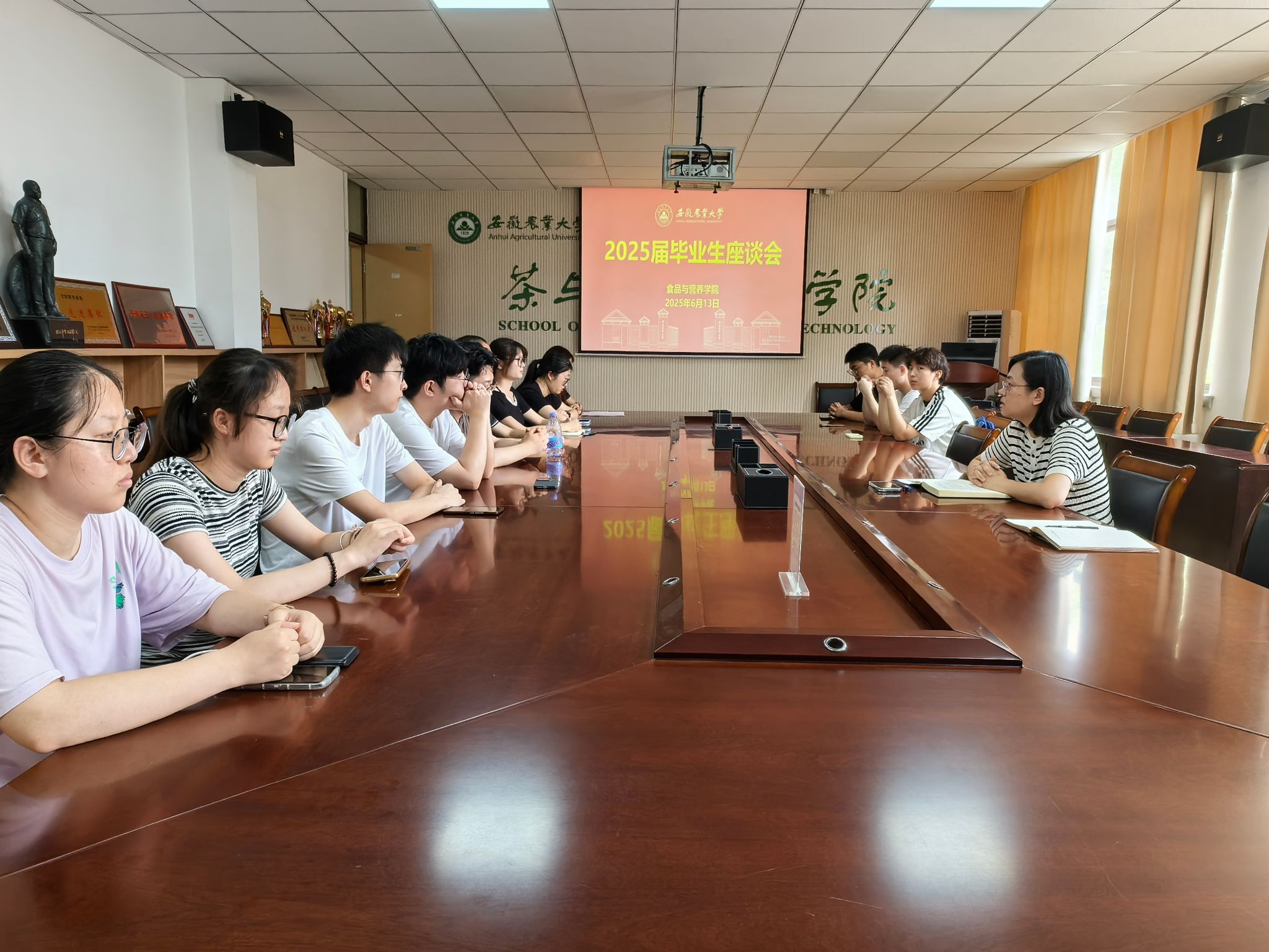 本网讯 在2025届毕业生即将离校之际,6月13日下午,食品与营养学院召开毕业生代表座谈会,听取毕业生对学院工作的意见建议,共话学院发展,院党委副书记、纪委书记夏晓昀参加并主持。