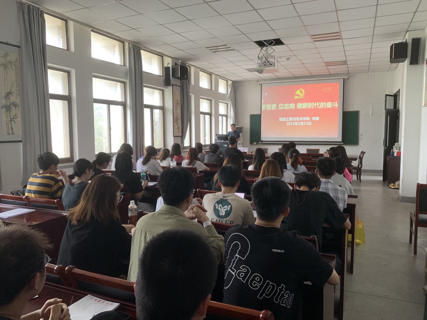 本网讯5月23日下午,轻纺工程与艺术学院在四楼会议室开展“新青年 新百年 学党史 立志向”专题系列党课,本次党课由学院副书记宋超主讲,学院全体2021年上半年第二批党员发展对象参加培训。