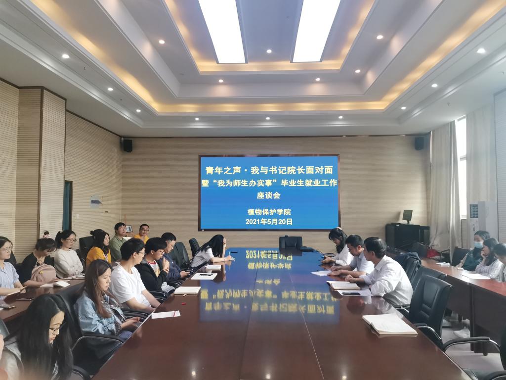 本网讯5月20日下午,植物保护学院在中西部大楼1213会议室开展“青年之声·我与书记院长面对面”暨“我为师生办实事”毕业生就业工作座谈会,学院党委书记张平、常务副院长潘月敏、毕业班班主任和毕业生代表参加会议。