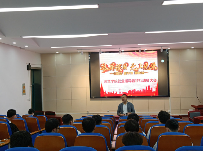 本网讯 为进一步激发毕业生参军报国的热情,帮助学生更好地了解应征入伍政策和流程,5月21日下午,园艺学院在二教245召开学院2021届毕业生征兵入伍动员大会。学院党委副书记、副院长鄢高翔出席并作动员讲话,2017级园艺专业、设施农业科学与工程专业辅导员、全体男生参加了本次会议。