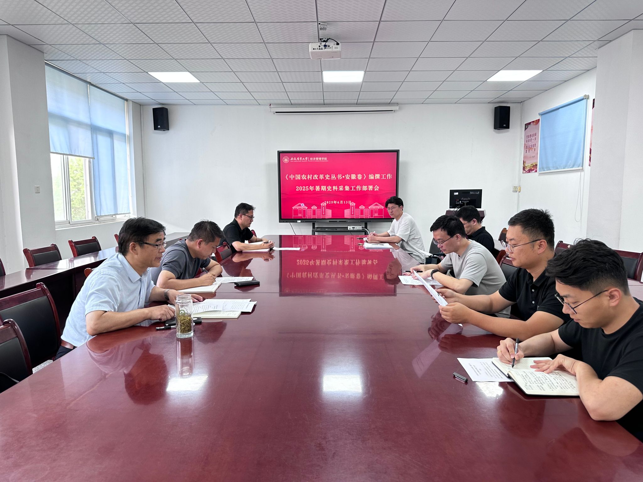 本网讯 6月13日下午,“十四五”国家重点出版规划项目《中国农村改革史丛书•安徽卷》编辑部召开会议,研究部署2025年暑期史料采集工作。学校团委和经济管理学院有关负责人、编辑部成员参加会议,会议由乡村振兴学院院长刘鹏凌主持。
