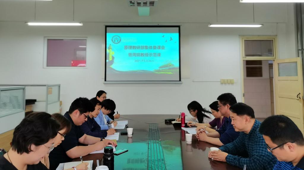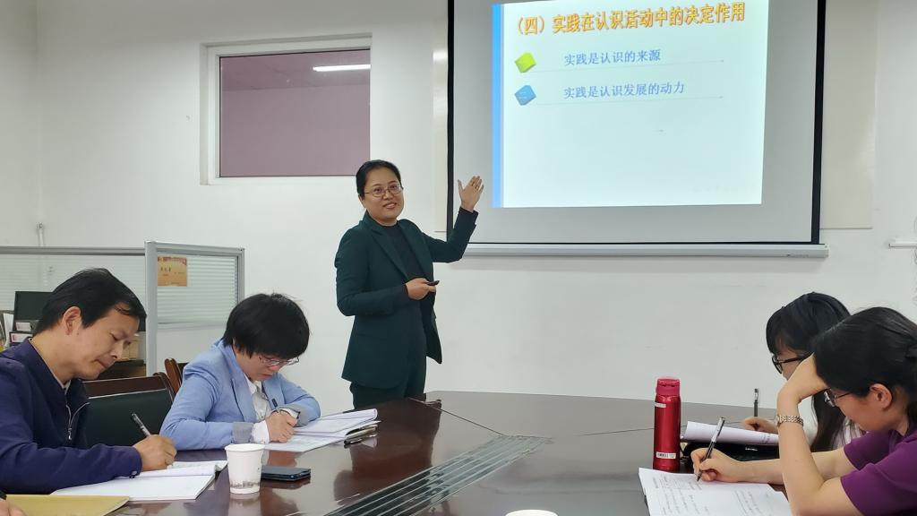 本网讯为加强基层教学组织建设,推进马克思主义基本原理教研部省级示范基层教学组织建设,切实提高思政课教学质量和效果,5月26日下午,马克思主义学院“原理”教研部召开集体备课会并邀请安徽省高校教师教学发展联盟第三届同课异构教学竞赛一等奖获得者、安徽中医药大学教授周娟进行示范教学。学院院长黄洪雷、“原理”教研部教师及“概论”“纲要”“法治”教研部部分教师参加集体备课,备课会由“原理”教研部主任徐玉祺主持。
