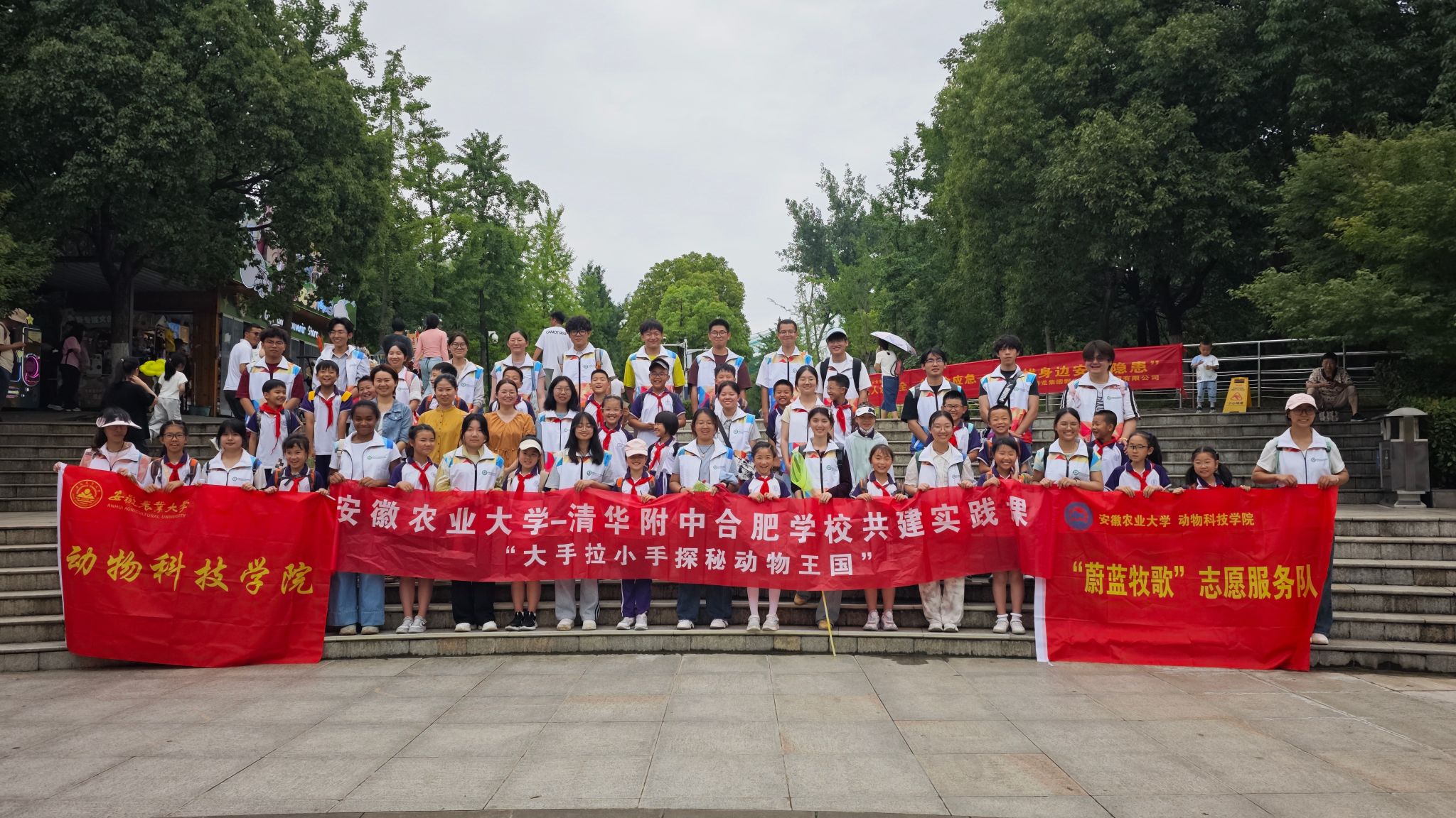 本网讯 6月15日,动物科技学院组织师生前往大蜀山开展《动物学》课程实践活动,并与清华附中合肥学校联合举办了“大手拉小手探秘动物王国”主题科普活动。此次活动旨在通过实践教学与科普互动,培养大学生的社会责任感,激发青少年对生命科学的热爱,传递生态文明理念和团队协作精神。