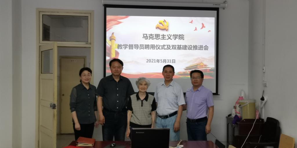 本网讯为进一步加强教学管理和教学过程监控,落实“以本为本”和“四个回归”,进一步推进课堂教学改革与课程建设,按照学校要求,5月31日下午,马克思主义学院举行“马克思主义学院教学督导员聘任仪式”和“双基”建设推进会,学院党政领导、拟聘督导员及相关教研部主任参加会议。会议由副院长袁修雨主持。
