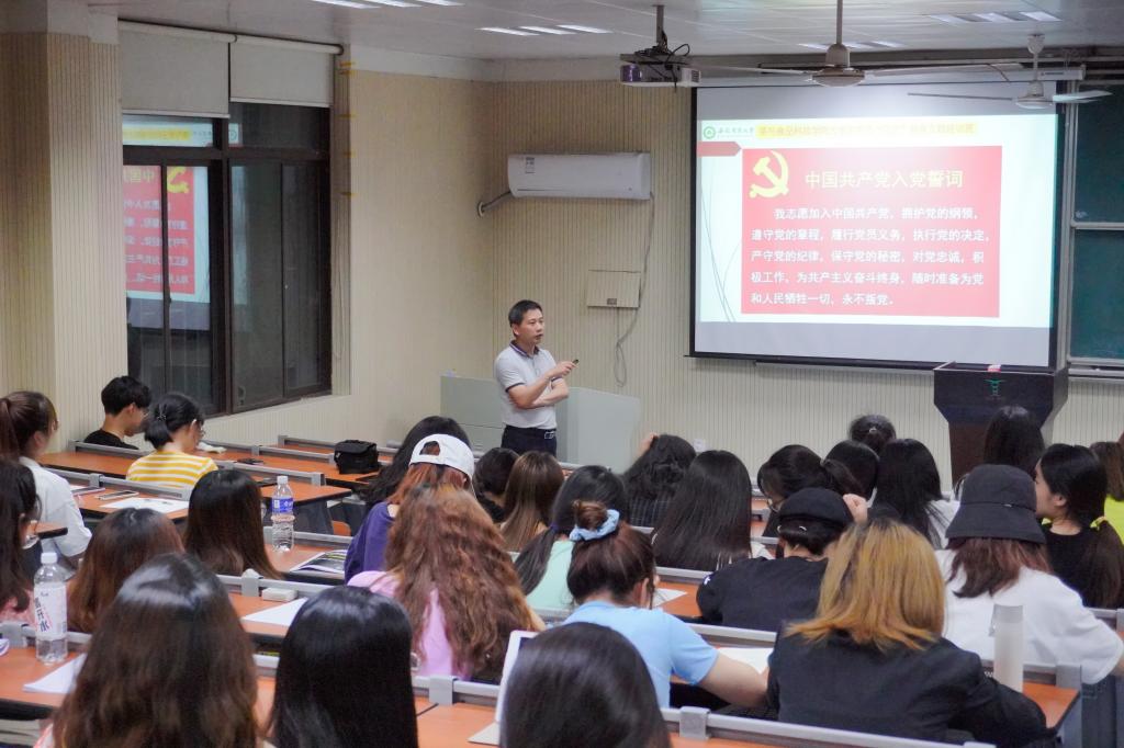 本网讯为扎实推进党史学习教育,引领广大党员从建党百年的辉煌历程中汲取奋进力量,5月29日晚,学院党委副书记、院长李大祥,党委副书记、纪委书记、副院长夏业鲍在茶业楼1992教室讲党课,全体本科生党员参加了学习。