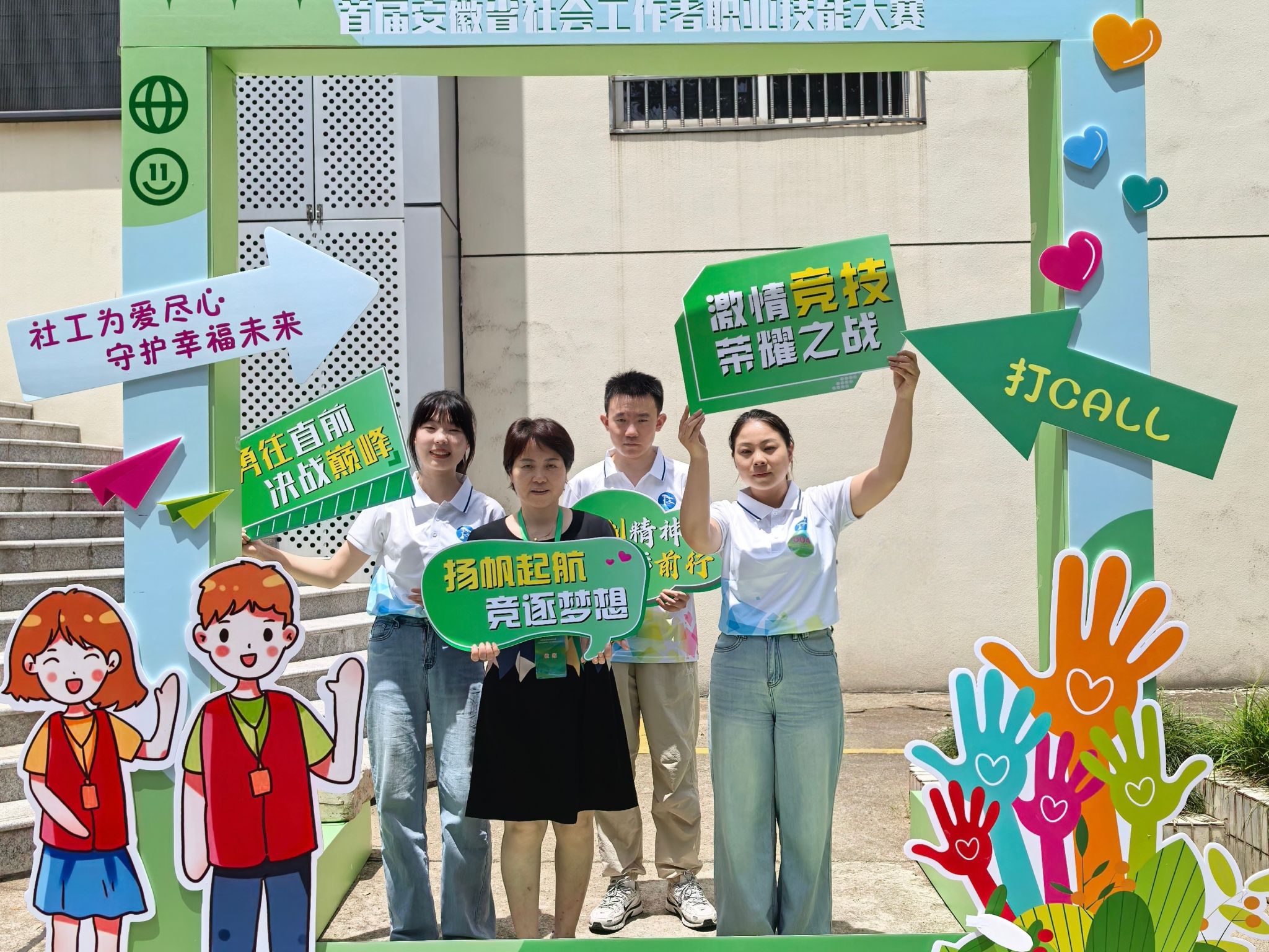 本网讯 安徽省首届社会工作者职业技能大赛于6月17日至18日在安徽师范大学成功举行。作为对全省社会工作人才队伍的一次重要检阅,本次大赛规格高、规模大。经过校赛遴选,人文社会科学学院3名学生代表学校参赛,与来自全省12所高校学生组选手同台竞技,学院党委副书记孙辉随队参赛。