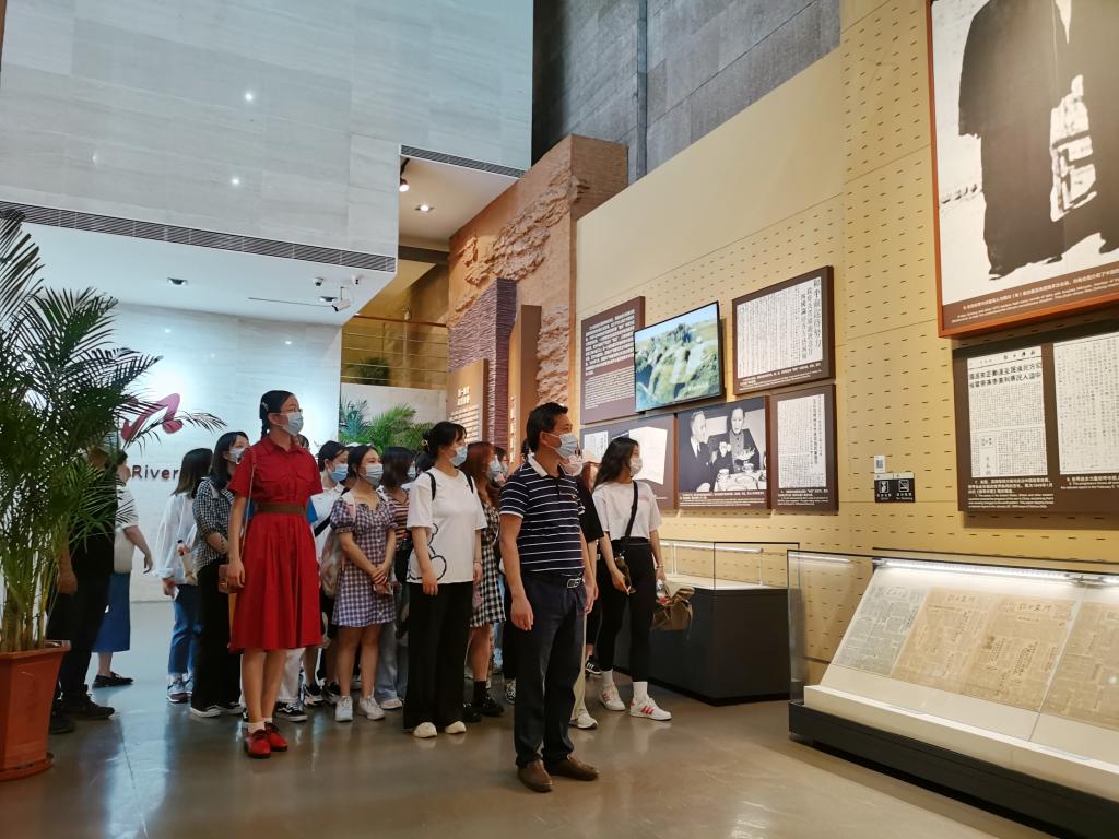 师生依次参观了渡江战役纪念馆的战前形势、战役准备、突破江防、战役胜利、人民支前、英烈伟迹等6个展厅。一件件历史文物、一幅幅革命影像、一段段感人肺腑的故事,再现了72年前渡江战役的艰难险阻和400万军民奋勇南渡的壮阔画面,带领大家走进了百万雄师过大江的历史长河,感受到渡江战役胜利的来之不易,体会到“渡江战役胜利是靠老百姓用小船划出来的”深刻内涵。在渡江战役纪念馆序厅,面对鲜艳的中国共产党党旗,夏业鲍带领大家重温入党誓词。
