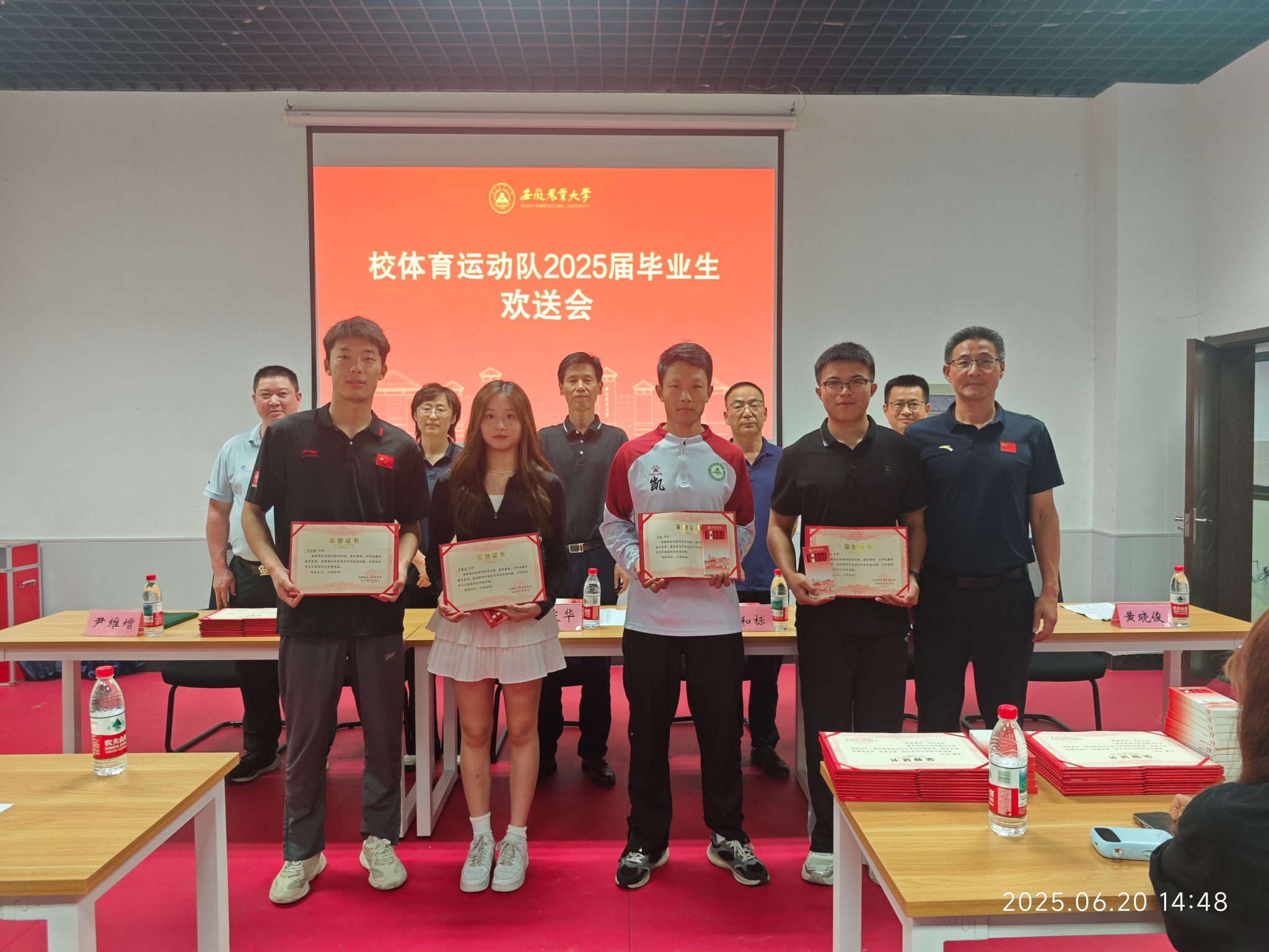 本网讯 6月20日下午,校体育运动队2025届毕业生欢送会在体育部会议室举行。校体育运动队全体教练员、毕业生参加欢送会,会议由体育部主任尹维增主持。