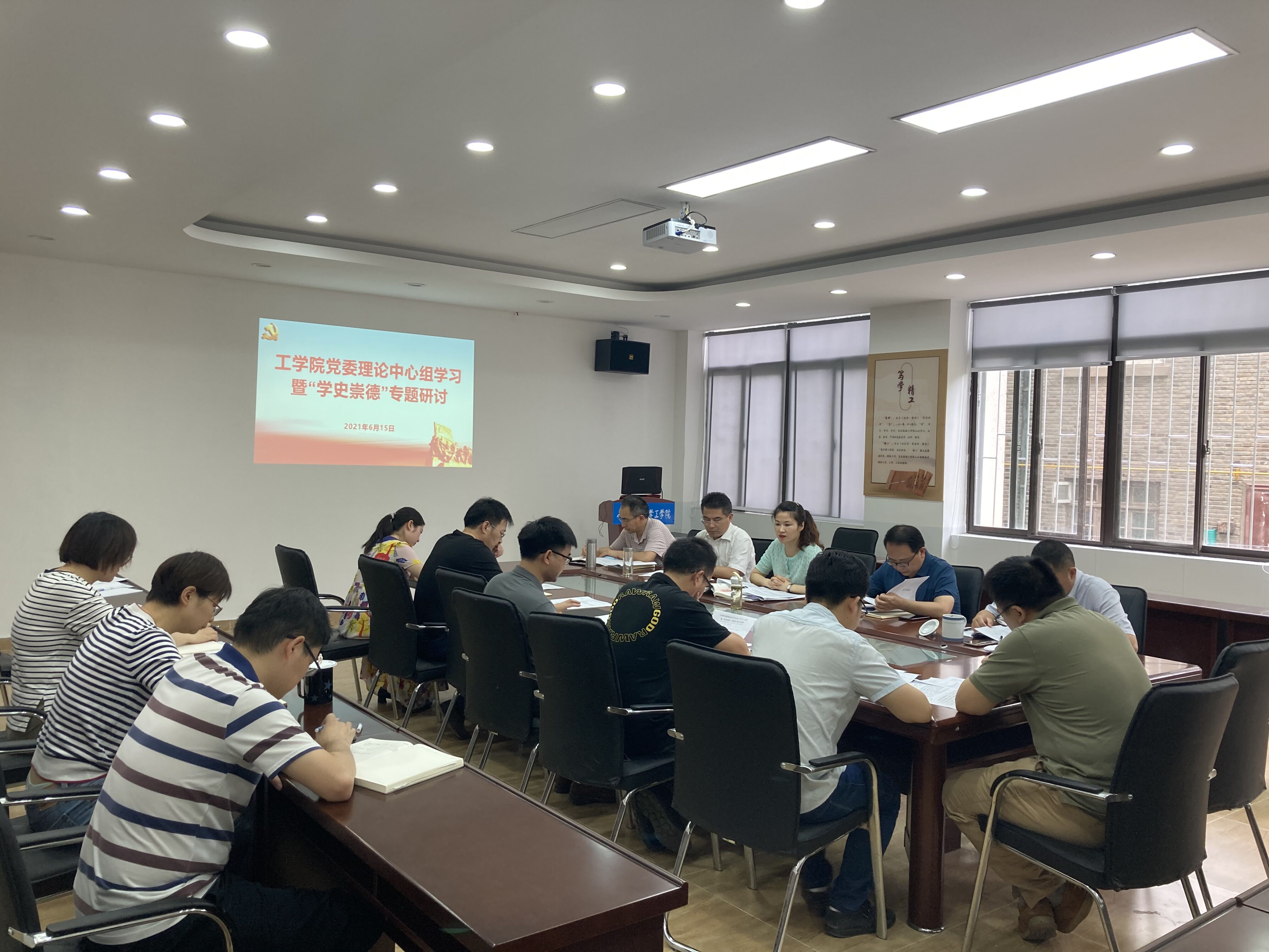 本网讯 6月15日,工学院党委召开理论学习中心组(扩大)暨“学史崇德”专题学习研讨会,院领导班子成员、系主任、各党支部书记参加学习,会议由院党委书记任琪主持。