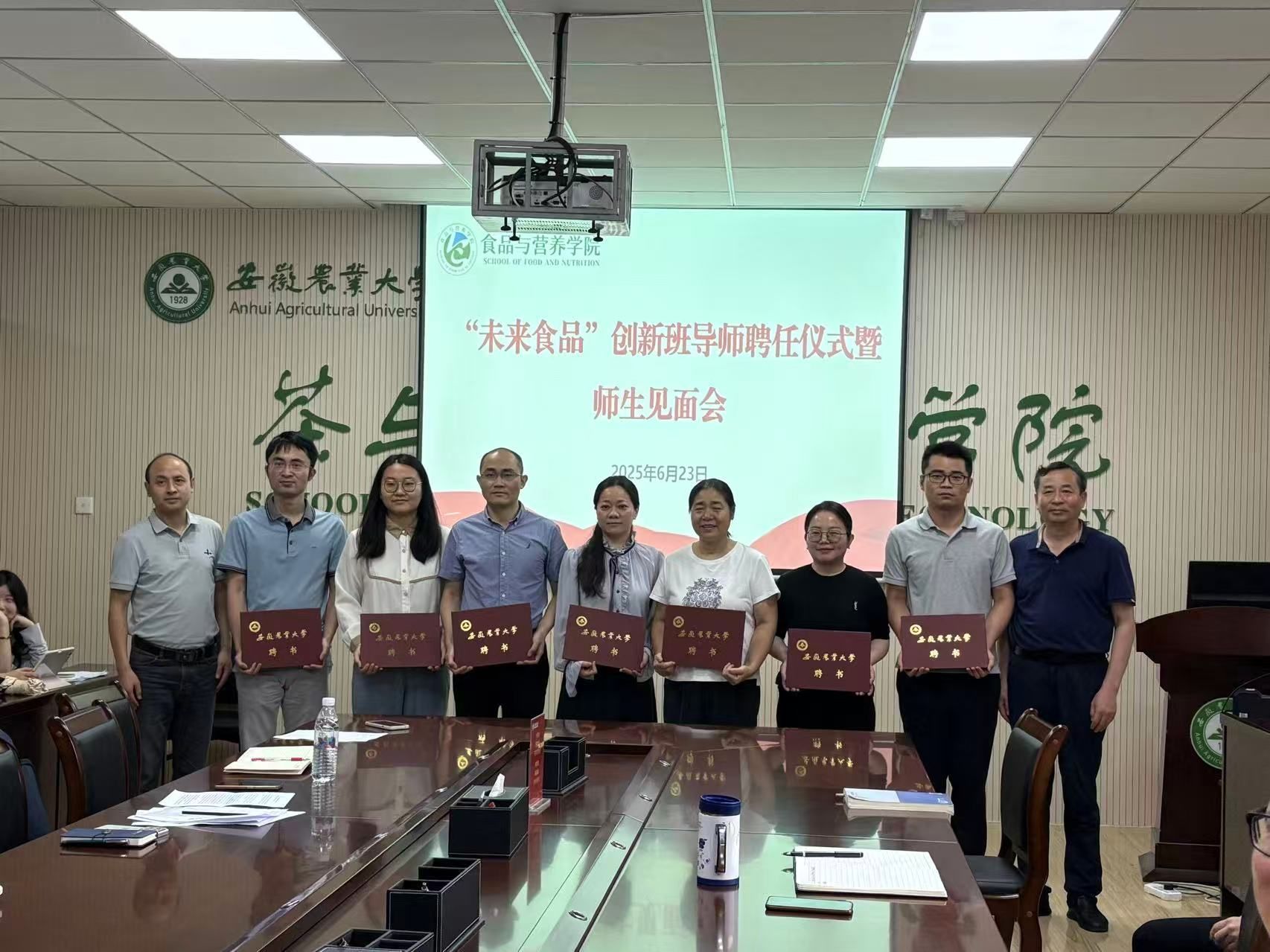 本网讯 6月23日下午,食品与营养学院在茶业楼219会议室召开“未来食品”人才培养创新班导师聘任仪式暨师生见面会,院党委书记孙福,院长周裔彬,创新班导师以及创新班全体学生参加。