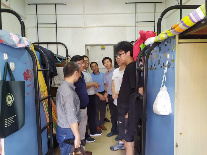 本网讯6月16日下午,理学院党委书记王冬平、院长毕守东、党委副书记孙伟、副院长张成堂、俞杰和毕业班班主任一行走访学院毕业生宿舍,为即将离开母校的毕业生送上亲切的问候与诚挚的祝福。
