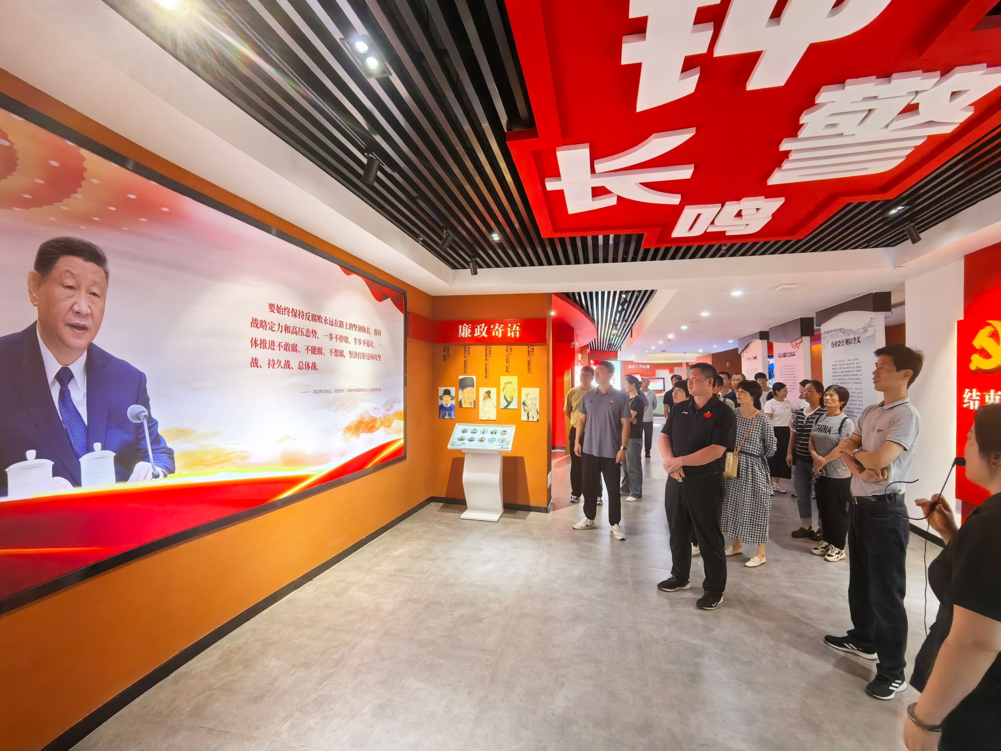 在教育基地,党员干部教师在讲解员的带领下,先后参观了廉政文化馆、法治文化教育馆和包公廉洁文化馆。通过深入浅出的现场解说、图文并茂的展板、视频播放以及声光电互动等不同形式,深入了解中国共产党反腐倡廉历史、安徽省反腐倡廉实践、中国古代优秀廉政文化以及中国法治建设发展史等内容,深刻感悟党中央坚定不移落实全面从严治党的信心和决心。