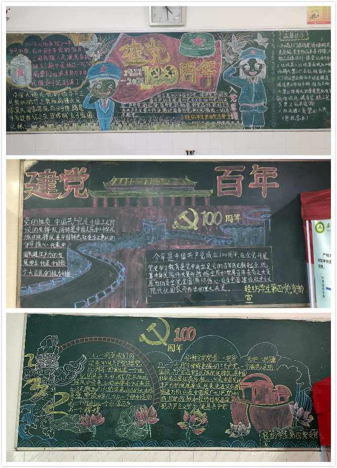 为把党史学习教育同办实事、解难题结合起来,切实把学习成效转化为工作动力和工作成果,6月18日,学生第四党支部结合艺术专业特色开展校园宿舍文化志愿服务活动——“百年路 党史情”党史学习教育主题板报墙绘。广大党员以饱满的热情投入到创作设计中,深刻体悟中国共产党从小到大、从弱到强的奋斗历程,进一步增强知史爱党、知史爱国的思想觉悟。