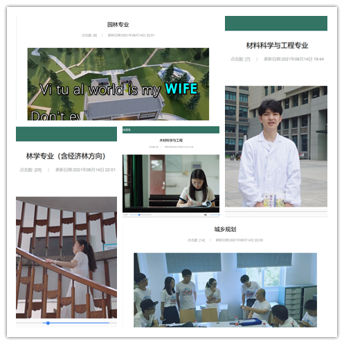 五个《学长学姐带你看专业》视频,分别以林院学子为主角,站在学生视角,向广大考生解读学科实力、专业特色、主要课程、就业方向等。无论是林学专业学姐最爱的“森林校园”,木材科学与工程专业学姐规划明确的学习态度,城乡规划专业学姐支援西部奋斗的青春,还是园林专业学长自编自导的激情说唱,材料科学与工程专业学长探秘的超强弹性材料工程中心。每一位“林院人”都在安农演绎着属于自己的精彩。(学院微信公众号和学院网“招生信息”栏联合推送http://lxyyl.ahau.edu.cn/zsjy/zsxx/bkszs1.htm)