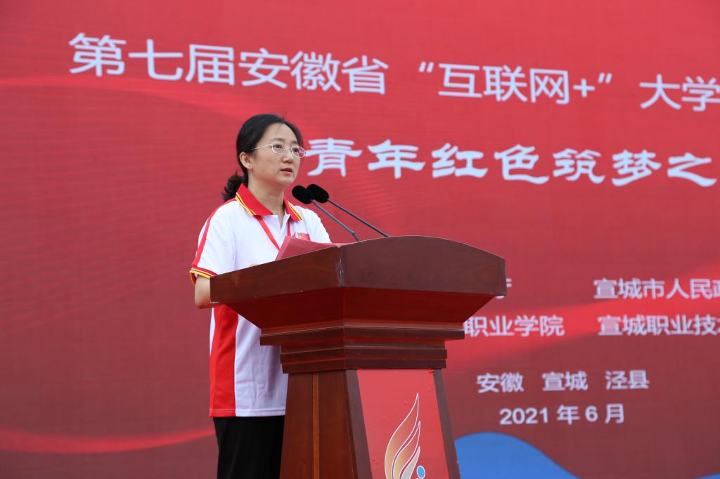 本网讯6月21日,第七届安徽省“互联网+”大学生创新创业大赛“青年红色筑梦之旅”活动启动仪式在泾县举行,省委教育工委副书记、教育厅厅长赵振华出席活动并做重要讲话。安徽省教育厅、宣城市、泾县相关负责同志和来自全省高校的200余名师生代表参加启动仪式,我校生命科学学院龙雁华老师作为教师代表发言。